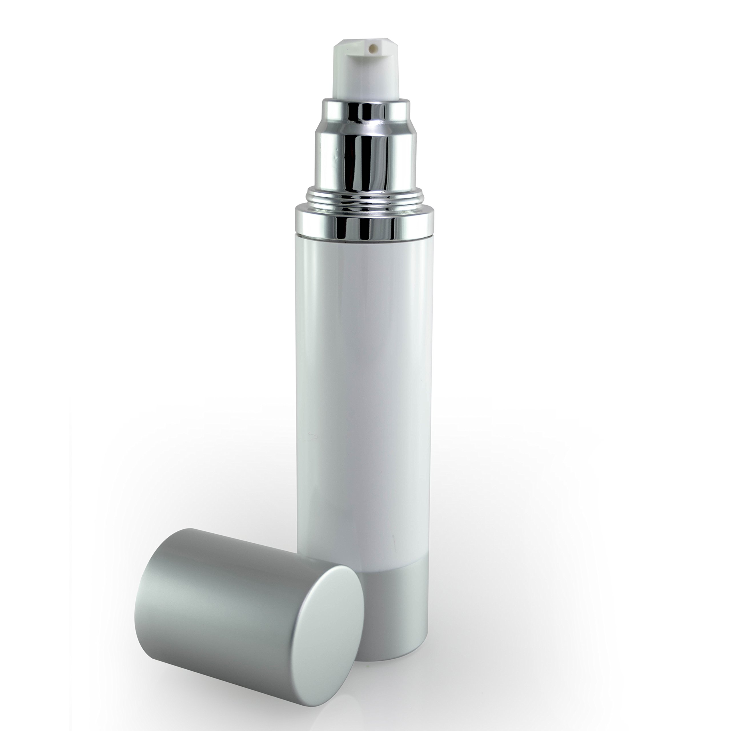 Cosmetic Packaging Now Luxe Airless Bottle, 50 ML, White Bottle with Matte Silver|Health & Beauty