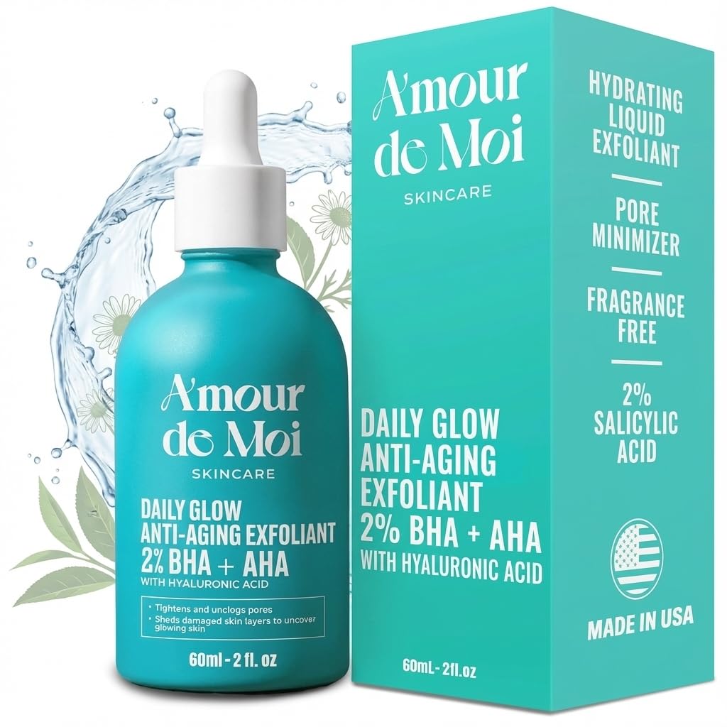 Amour de Moi 2% BHA AHA Liquid Salicylic Acid Exfoliant - Gentle Peel, Pore Minimizer, Face Exfoliator for blackheads, wrinkles with Hyaluronic acid -|Health & Beauty