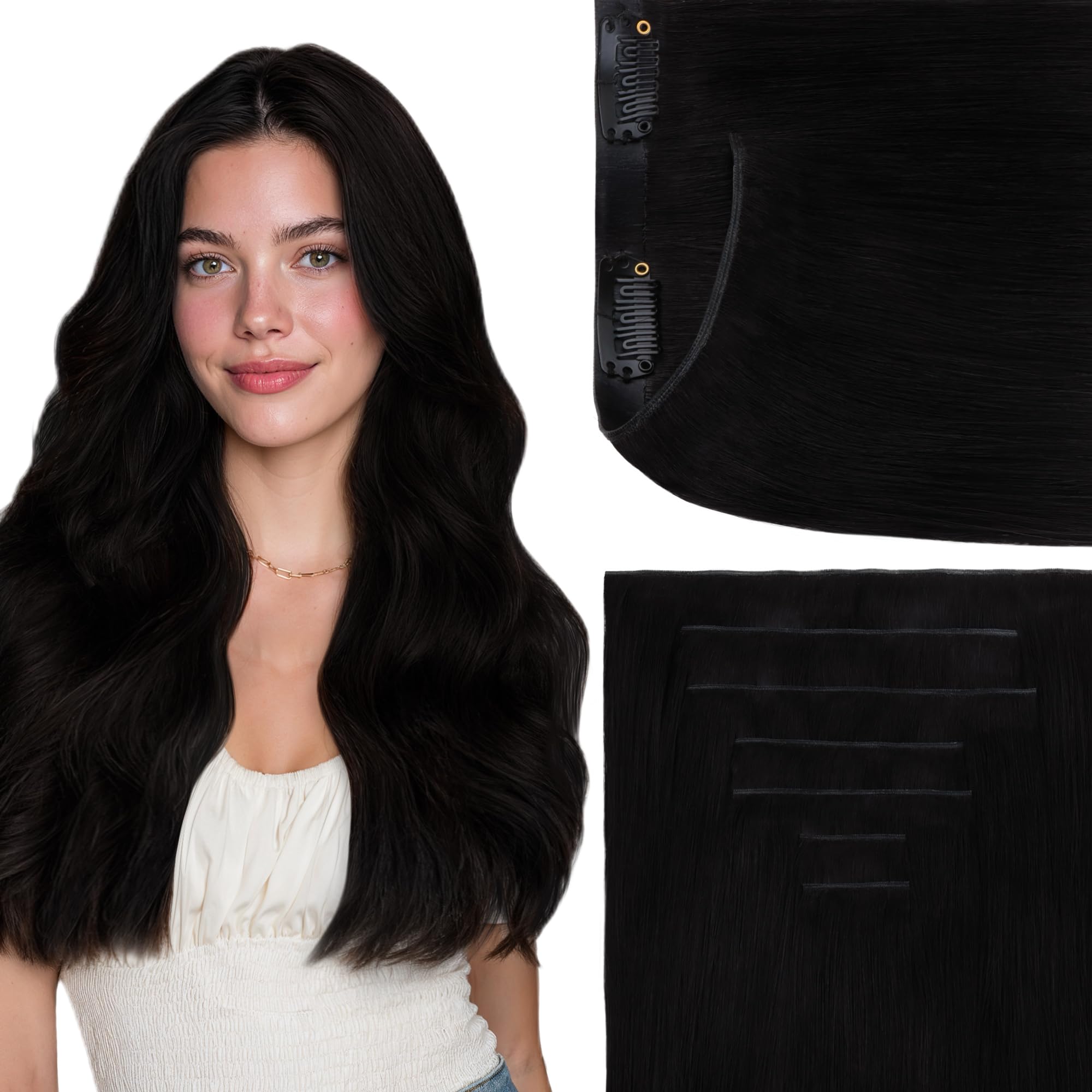 GOO GOO Genius Clip in Hair Extensions, 18inch 120g 7pcs, Seamless PU Clip in Hair Extensions, Virgin Real Human Hair, #1 Jet black|Health & Beauty