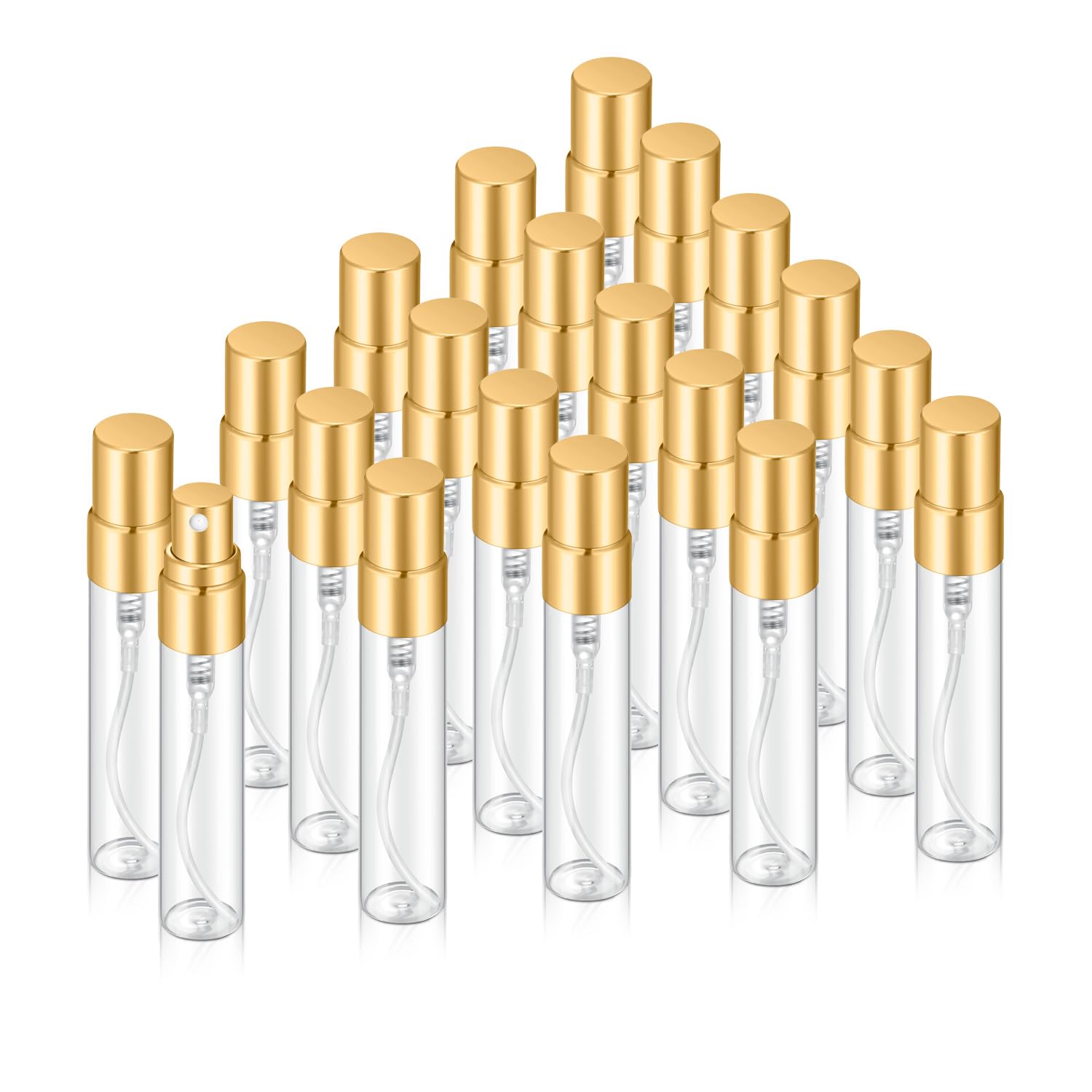 Jxcmeng 20Pcs 5ml Empty Clear Glass Mist Spray Bottle Refillable Mini Perfume Atomizer Travel Sample Bottle with Golden Aluminized Nozzle Makeup|Health & Beauty