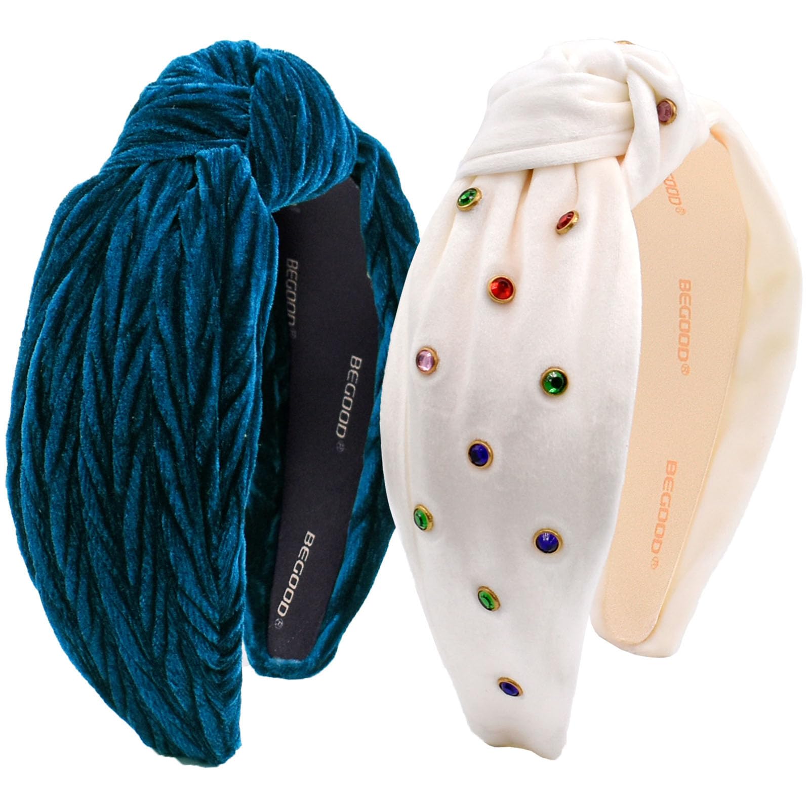 BEGOOD Headbands for Women Rhinestone Knotted Wide Headband Womens Top Knot Head Bands Fashion Hairbands Turban Hair Accessories for Girls 2Pcs|Health & Beauty