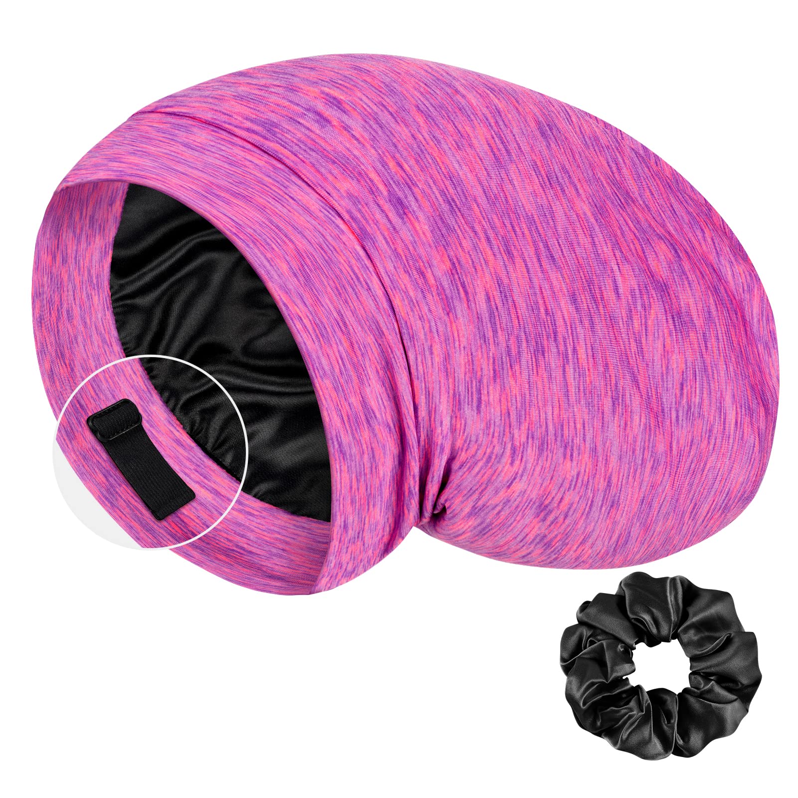 LULUSILK Mulberry Silk Bonnet for Sleeping Women, Real Silk Sleep Cap for Curly Hair and Braids, Pure Head Wrap with Scrunchies, Hot Pink|Health & Beauty