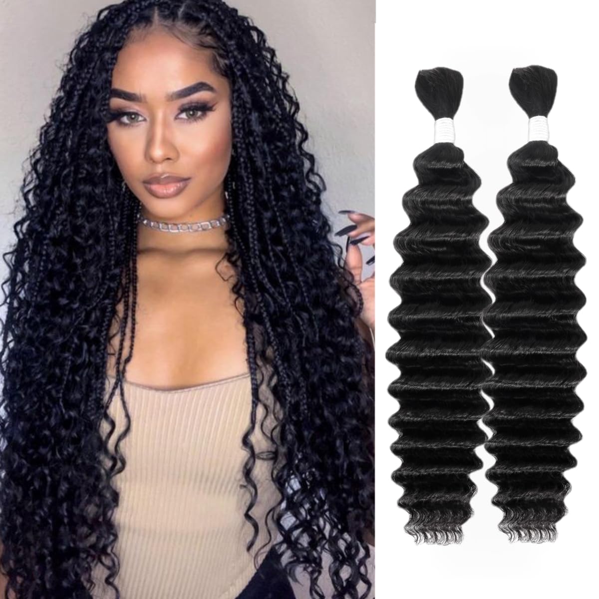 Human Braiding Hair Deep Wave Bulk Human Hair for Braiding Bohemian Knotless 2 Bundles 100g 22Inch No Weft 10A Brazilian Virgin Human Hair Extensions|Health & Beauty