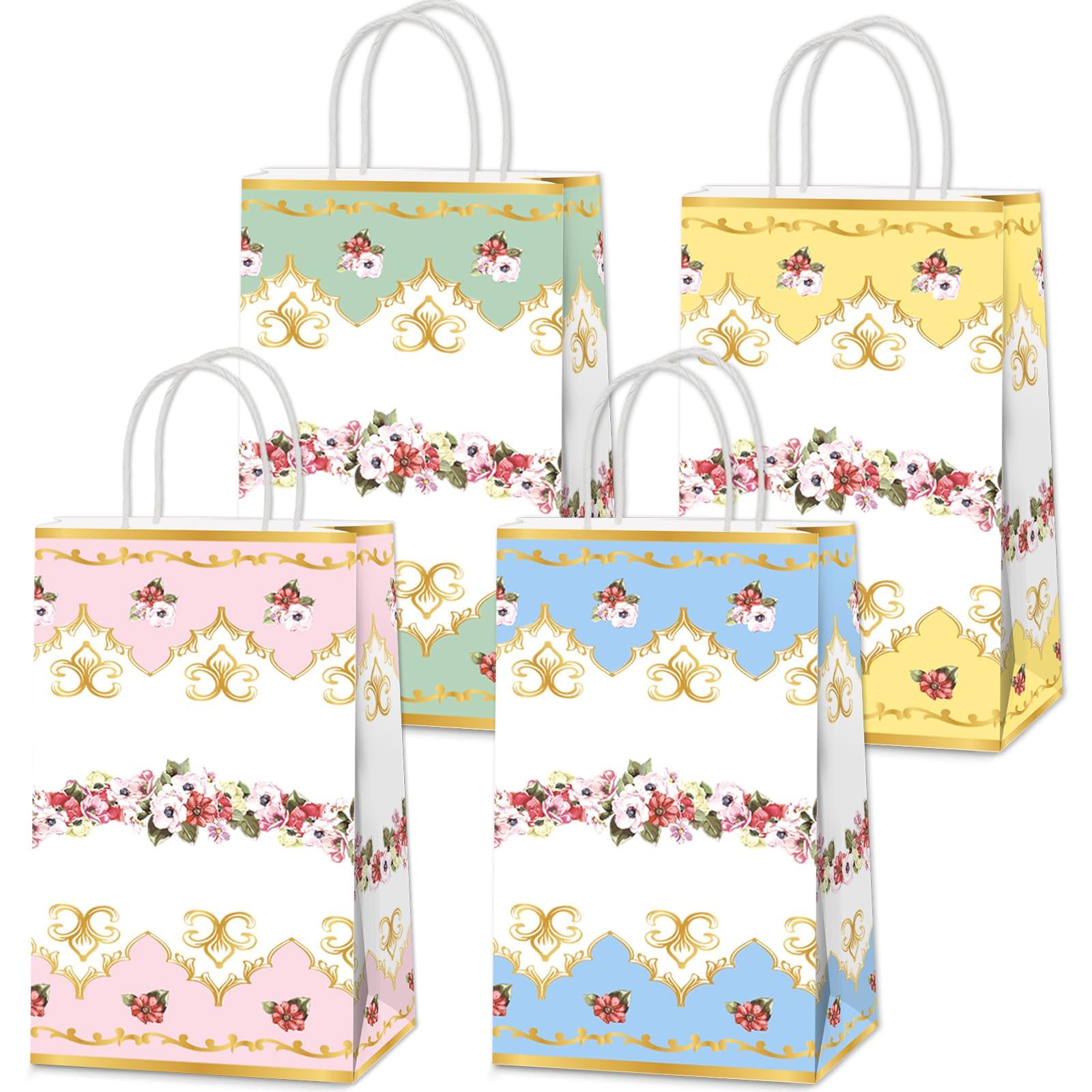ojustbeok 16Pcs Floral Tea Party Gift Bags with Handles Spring Summer Vintage Flower Goodie Candy Treat Bags Tea Party Decorations for Easter Mother's|Health & Beauty