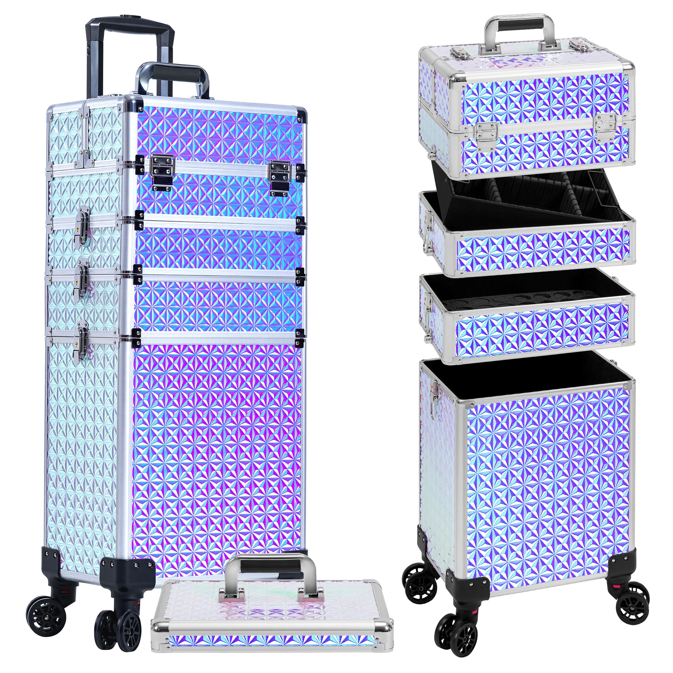 AROUS 5 in 1 Rolling Makeup Train Case Cosmetology Case on Wheels Large Cosmetic Organizer Travel Cart for Hairstylist Artist Nail Beauty Salon Barber|Health & Beauty
