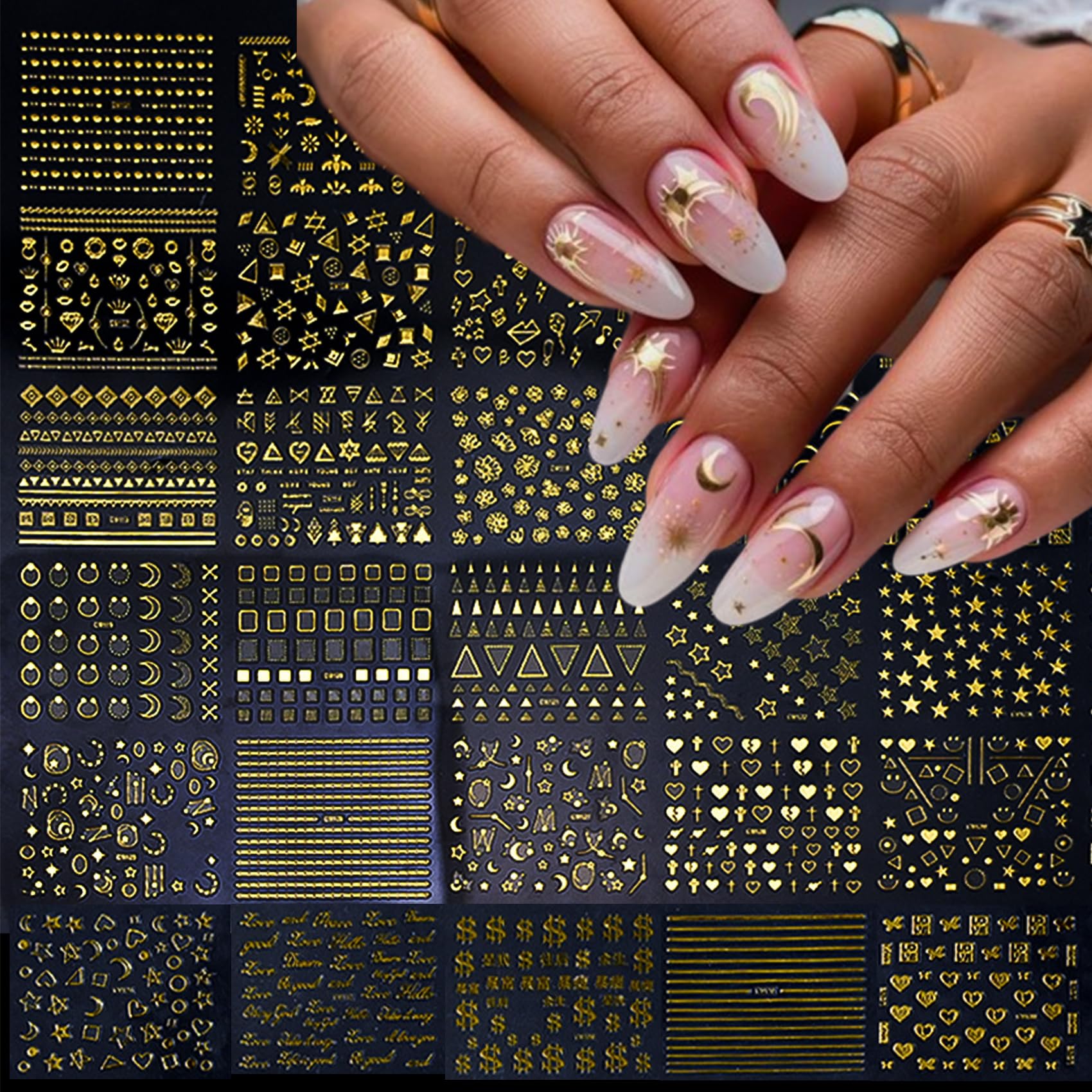 Glue on Nails Medium Length Press on Nails Square Acrylic Nails White French Tip Fake Nails Press ons Pink Full Cover Stick on Nails Flower Golden|Health & Beauty