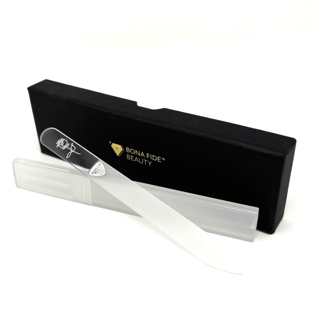 Bona Fide Beauty Czech Glass Nail File with Hardcase, Rose Design Nail Filer with New Clear Case, Gift for Women|Health & Beauty