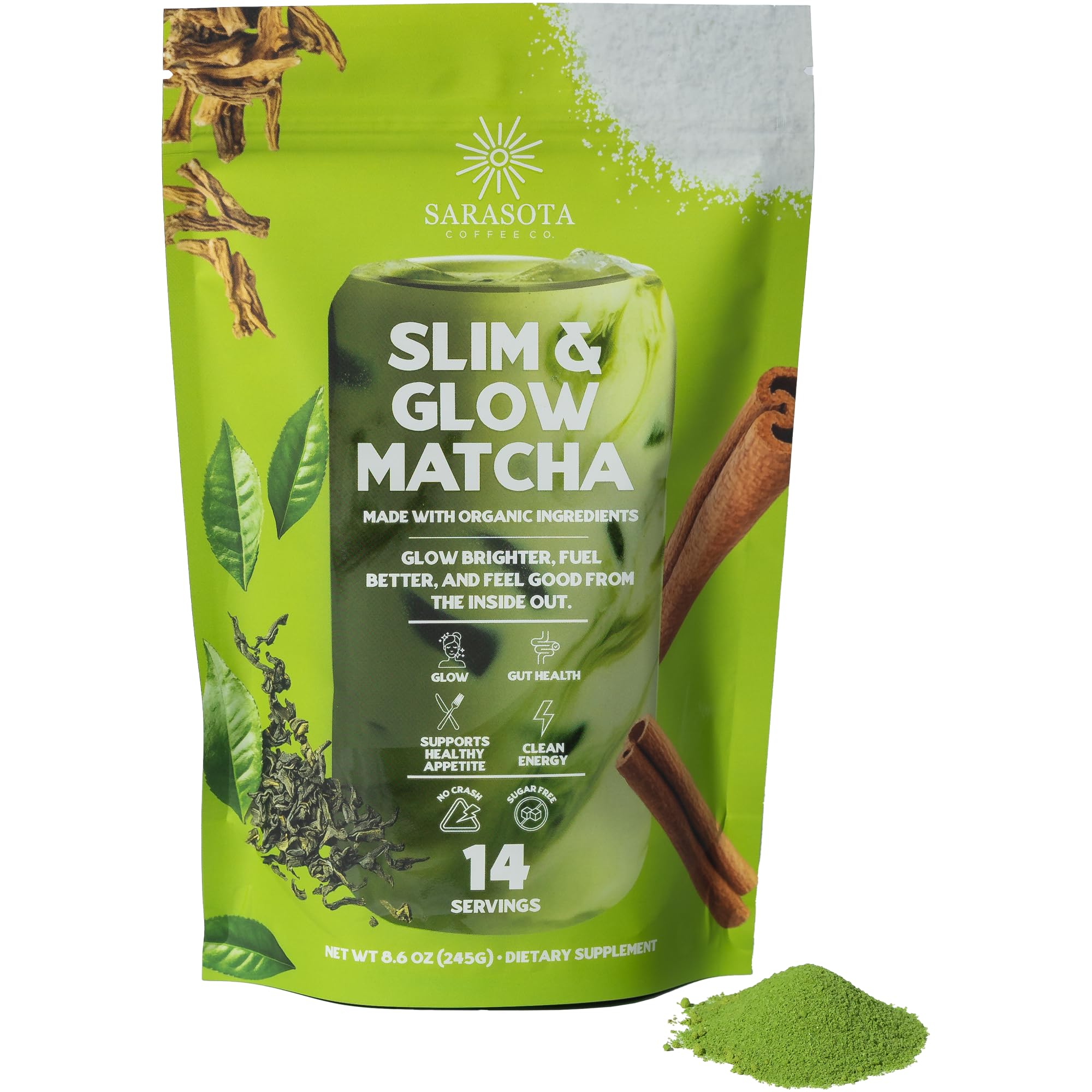 Slim & Glow Matcha Latte Powder – Collagen Peptides, Organic Matcha, Inulin Prebiotic Fiber, Green Tea Extract, Biotin – Gut Health, Craving Control –|Health & Beauty