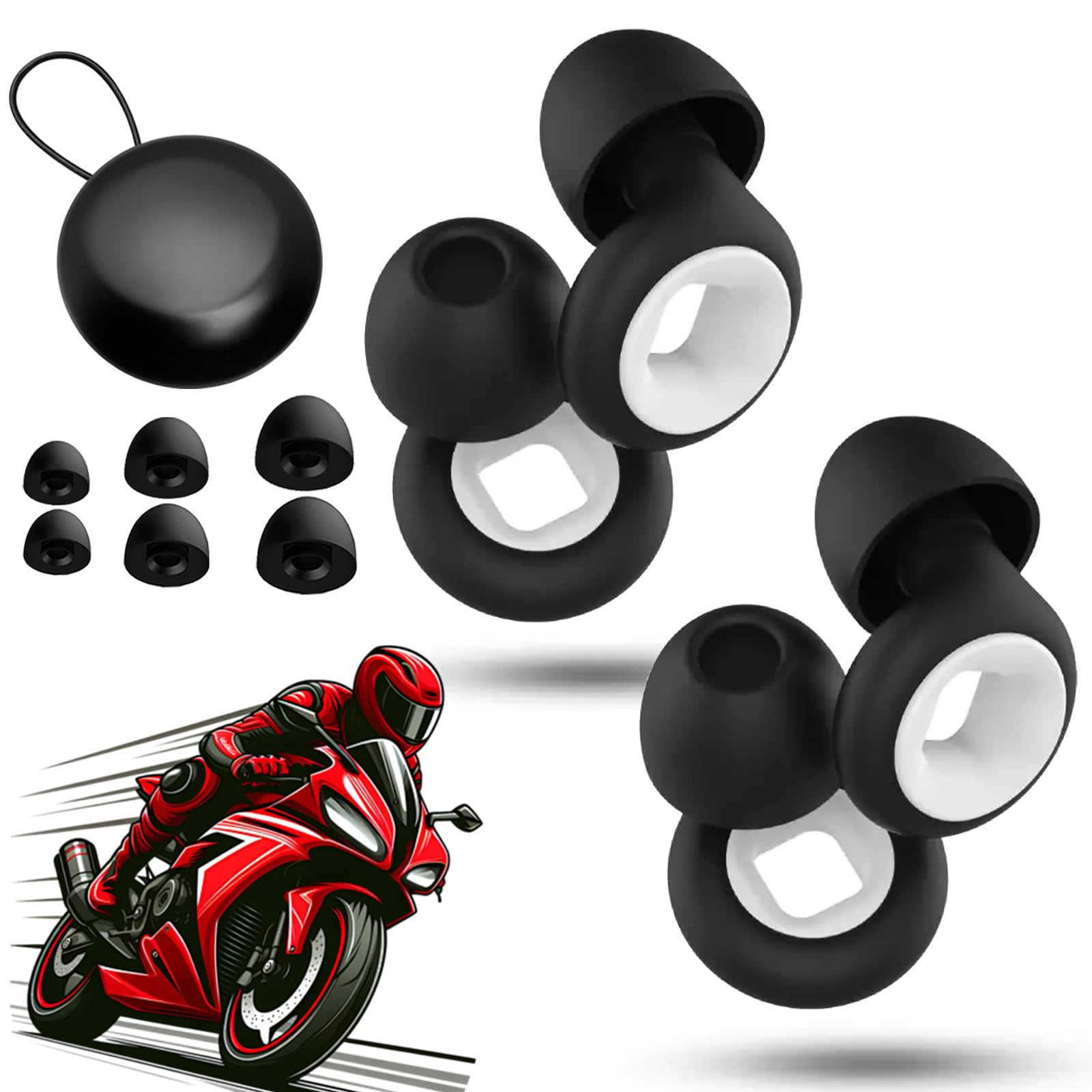 Moto Earplugs - 27 db, Super Soft Reusable Moto Earplugs, Reduce Wind Noise (Black & White*2, One Size)|Health & Beauty