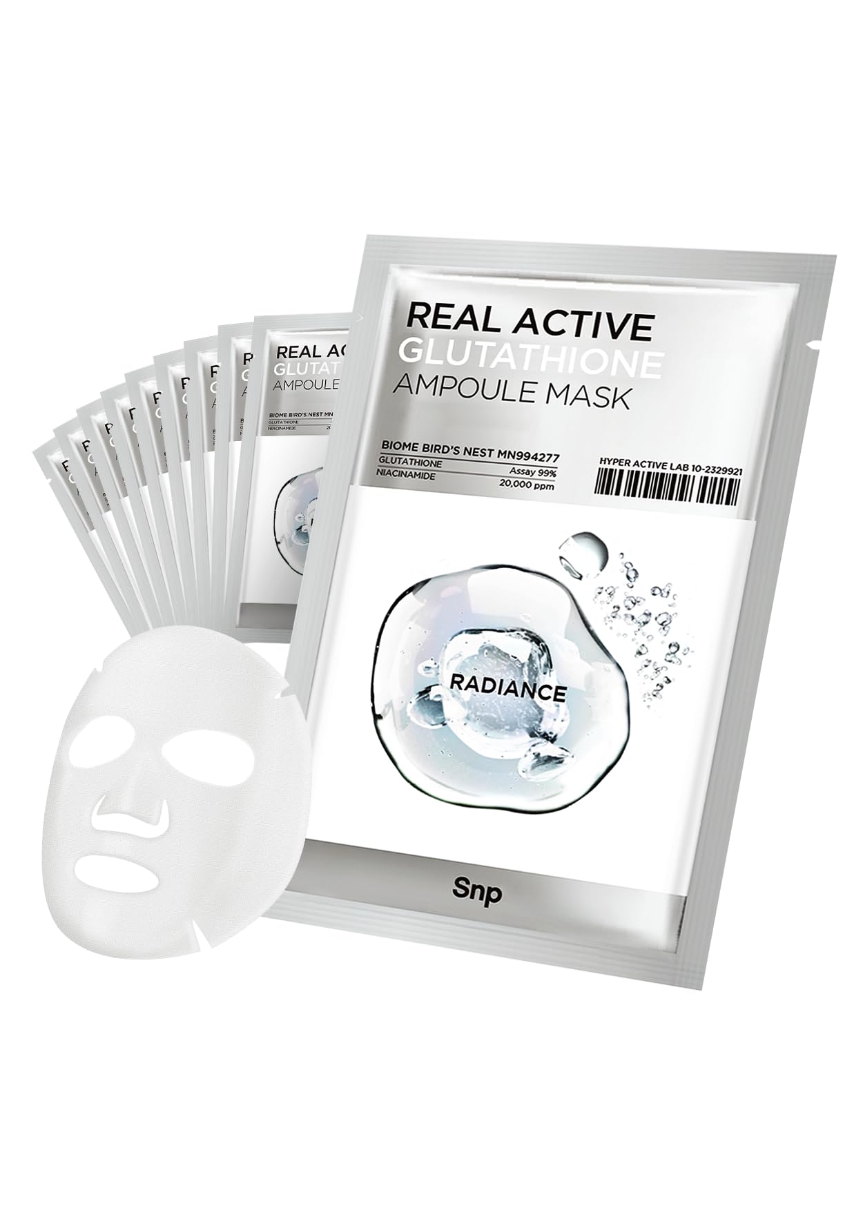 SNP Real Active Glutathione Ampoule Sheet Mask | Vegan Face Mask with Glutathione & Niacinamide | Revitalizing and Balancing for All Skin Types ||Health & Beauty