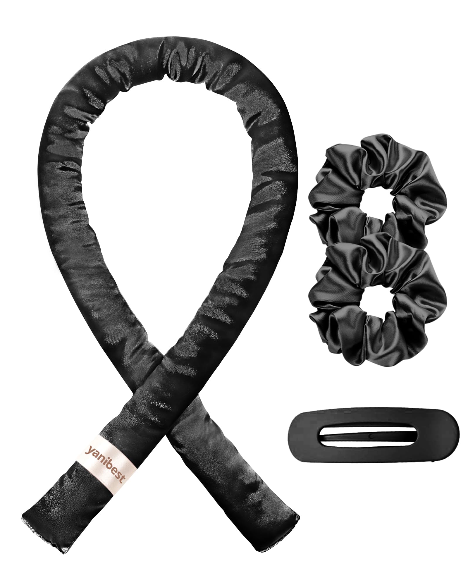 Yanibest Satin Heatless Curler Set, Overnight Hair Curler to Sleep in, No Heat Heatless Curl with Scrunchies and Clip,Black|Health & Beauty