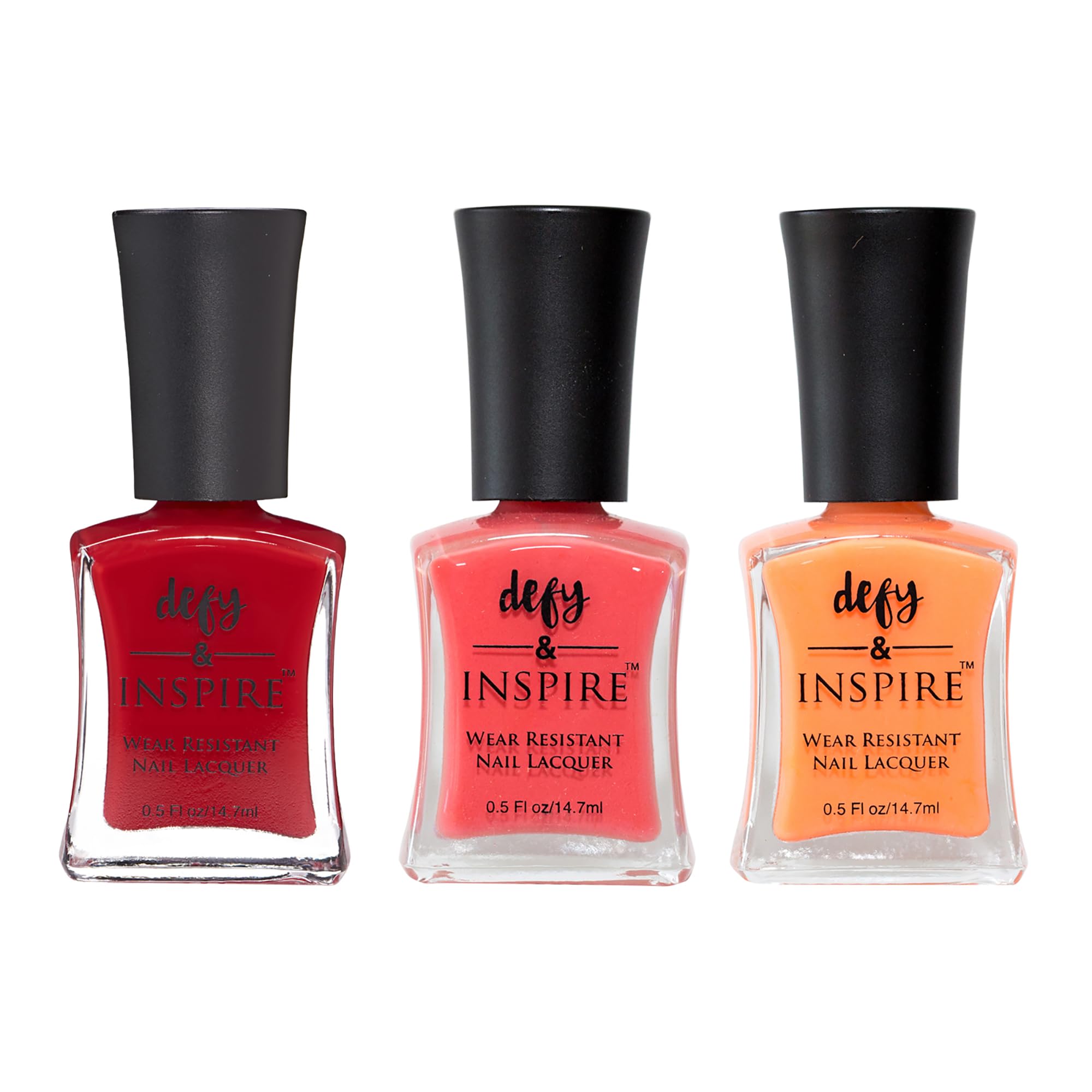 defy & Inspire Wear Resistant Nail Lacquer, Red/Oranges - Quick Dry, Longwear Nail Polish - Thick, Brush Design for Manicure and Pedicure - 3 pc|Health & Beauty