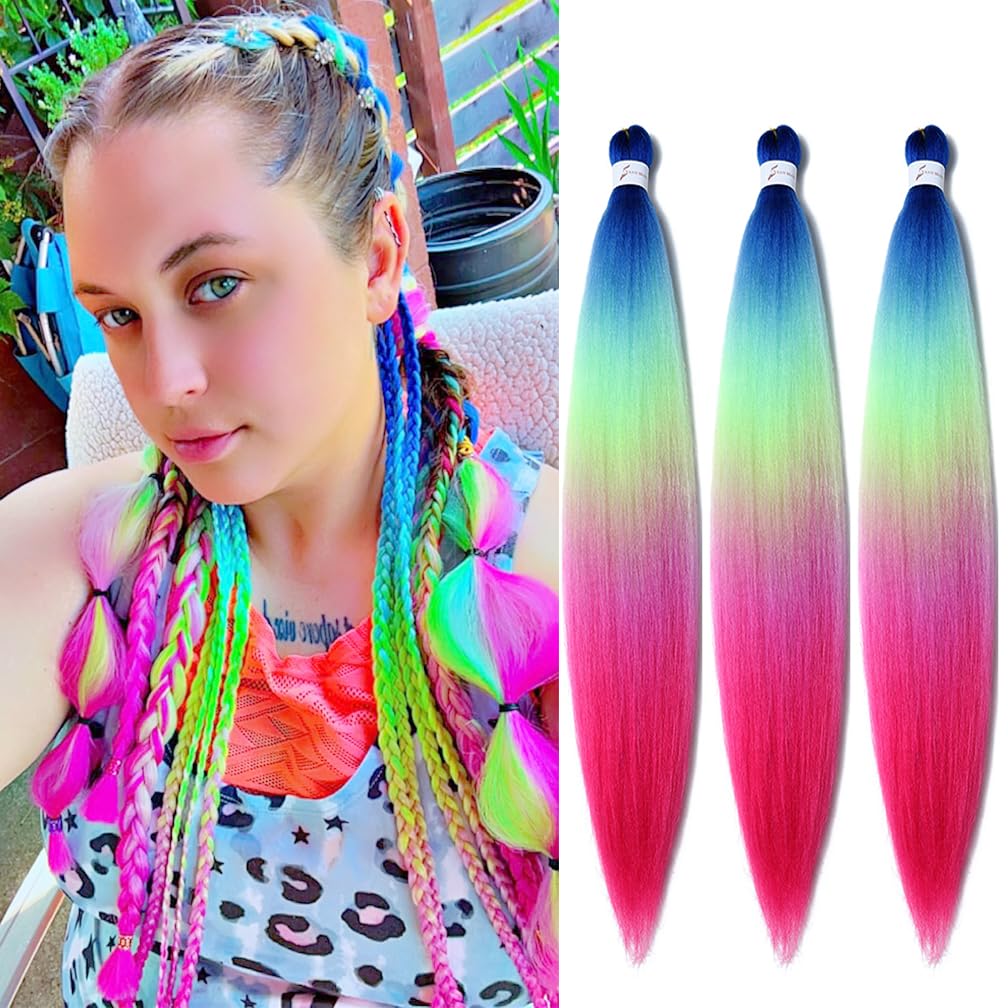 BALINGHAIR Pre Stretched Braiding Hair 28 Inch Braids Hair 5 Tone Rainbow Color Ombre Hot Water Setting (E7-3Packs)|Health & Beauty