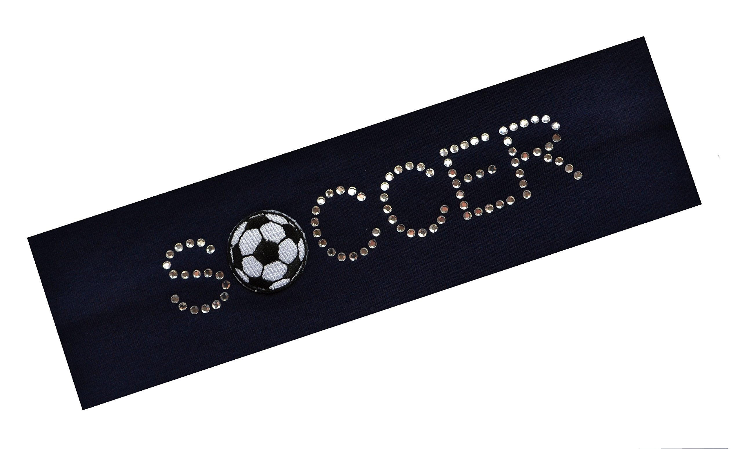 Funny Girl Designs SOCCER BALL Rhinestone Cotton Stretch Headband (Navy Blue)|Health & Beauty