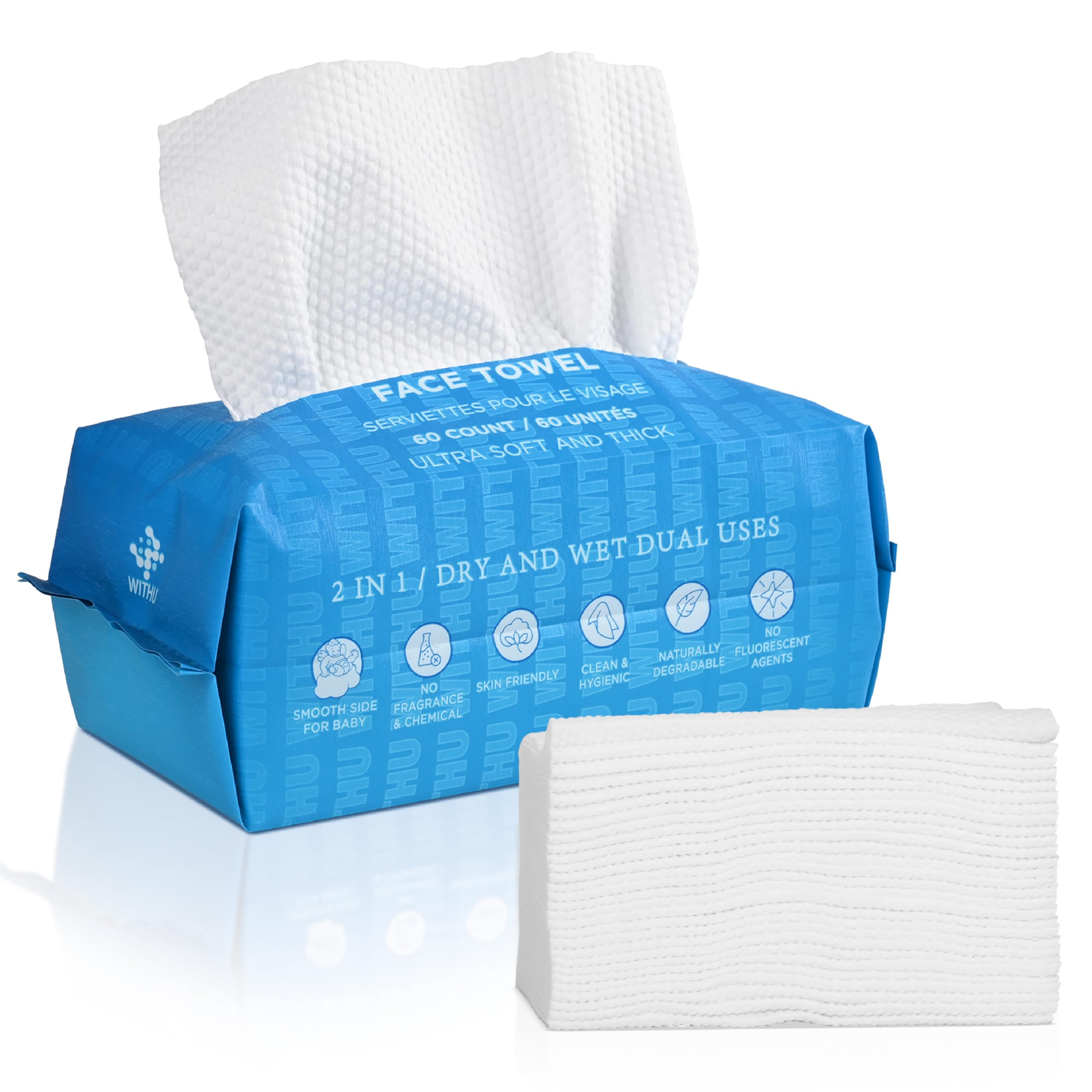 WITHU Disposable Face Towels, Ultra Soft, Biodegradable Makeup Remover Wipes, Hypoallergenic & Lint-Free Towelettes for Facial Cleansing, Multi-Use|Health & Beauty