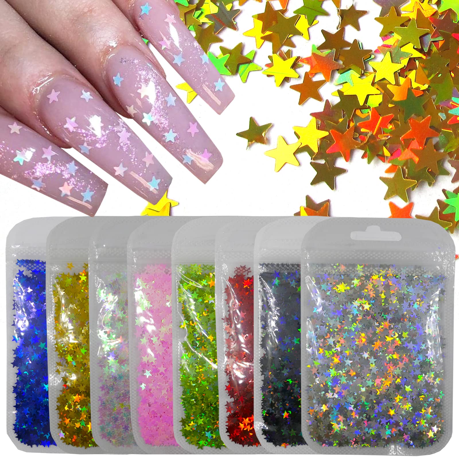 80g Mixed Color Star Chunky Glitter Sequins Iridescent Holographic Stars Glitters Flakes Sparkles Sticker Arts Crafts Resin Supplies Nail Art DIY|Health & Beauty