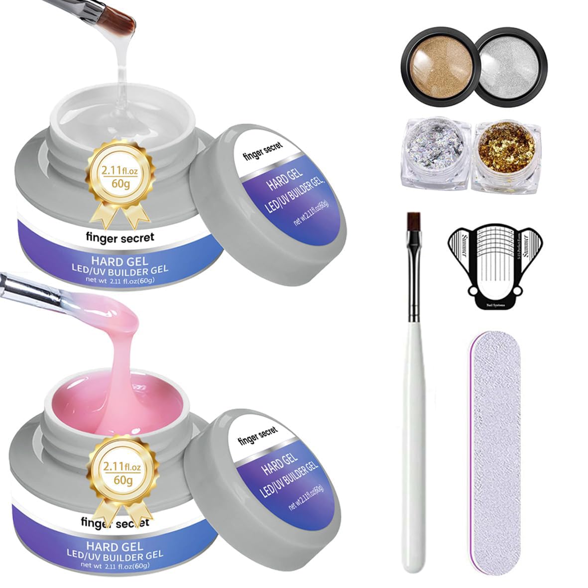 Clear & Pink Hard Gel for Nails 120g Builder Gel Nail Kit r for Nail Extension and Strengthening for Home Use or Salon|Health & Beauty