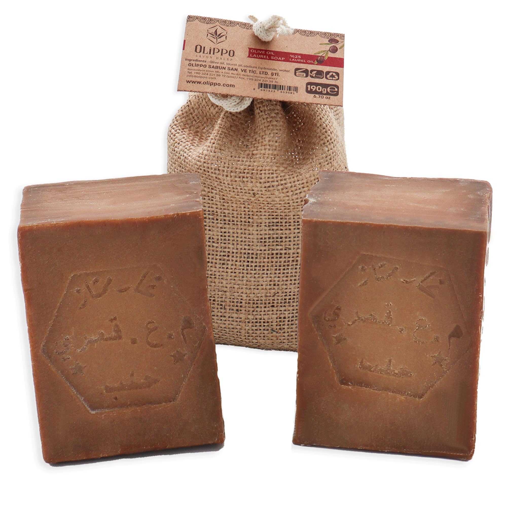 Natural Aleppo Soap 2-Pack - Handmade Organic Soap Bars, 25% Laurel Oil & 75% Olive Oil, 190g Each - Premium Natural Skincare for All Skin Types|Health & Beauty