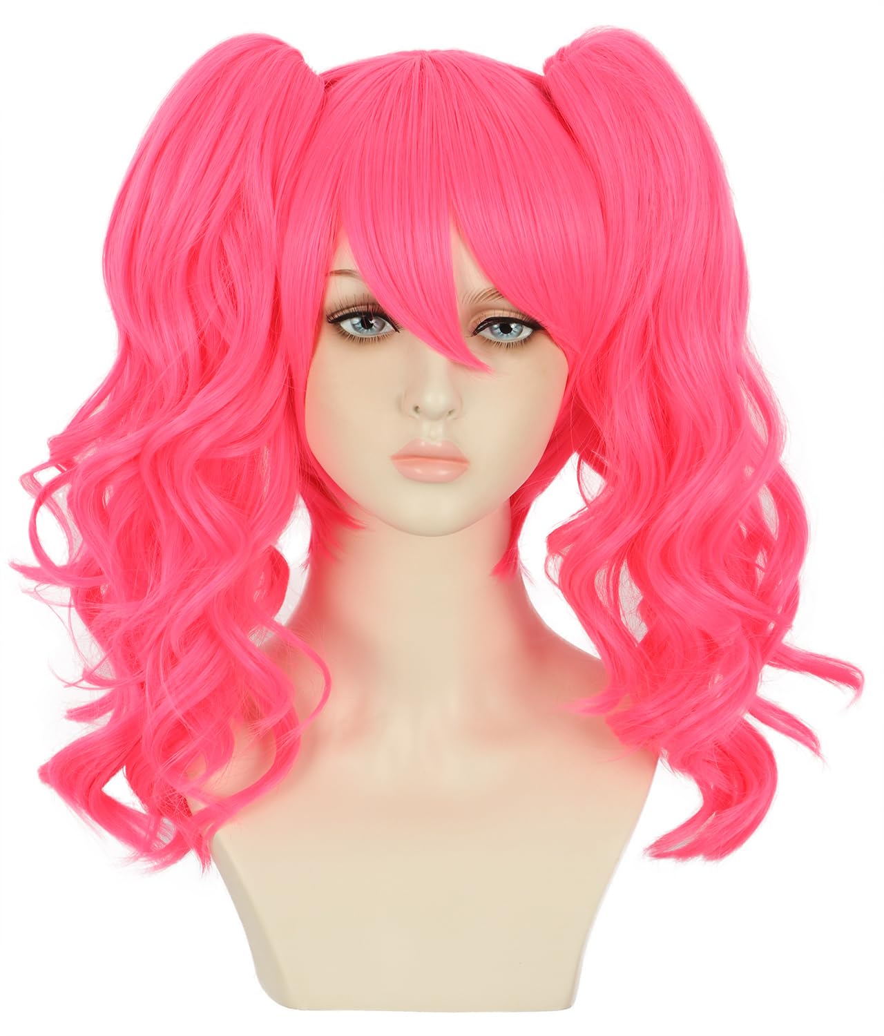 yuehong Long Curly Hot Pink Double Ponytail Clip Wig for Woman Halloween Cosplay Costume|Health & Beauty