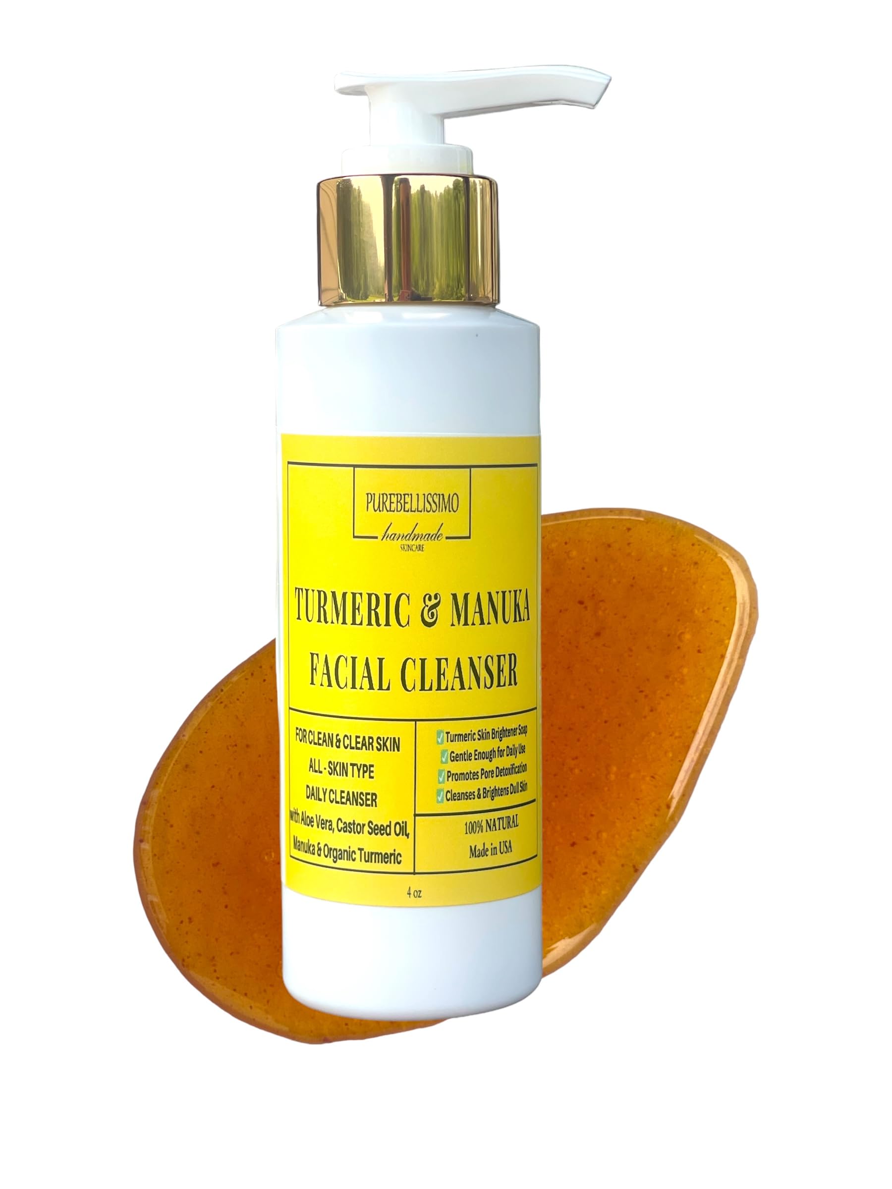 PureBellissimo All Natural Turmeric Manuka Face Wash with Aloe Vera - Facial Cleanser, Gently Removes Dirt and Oil, Without Drying, Turmeric Soap for|Health & Beauty