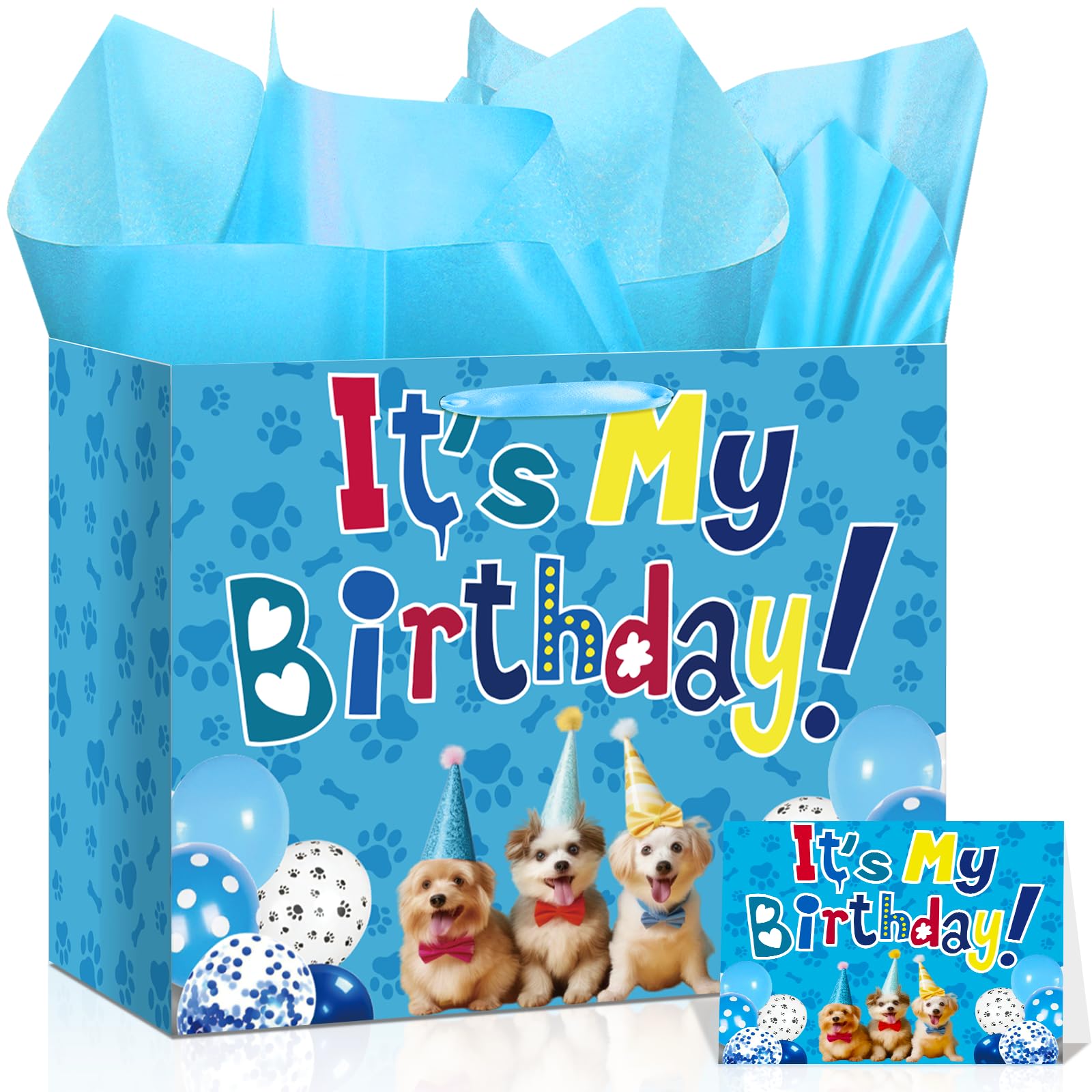 Puppy Paw Print Gift Bag for Dog Birthday Party Supplies - Large Wrapping Bag with Tissue Paper, Greeting Card and Decorations|Health & Beauty
