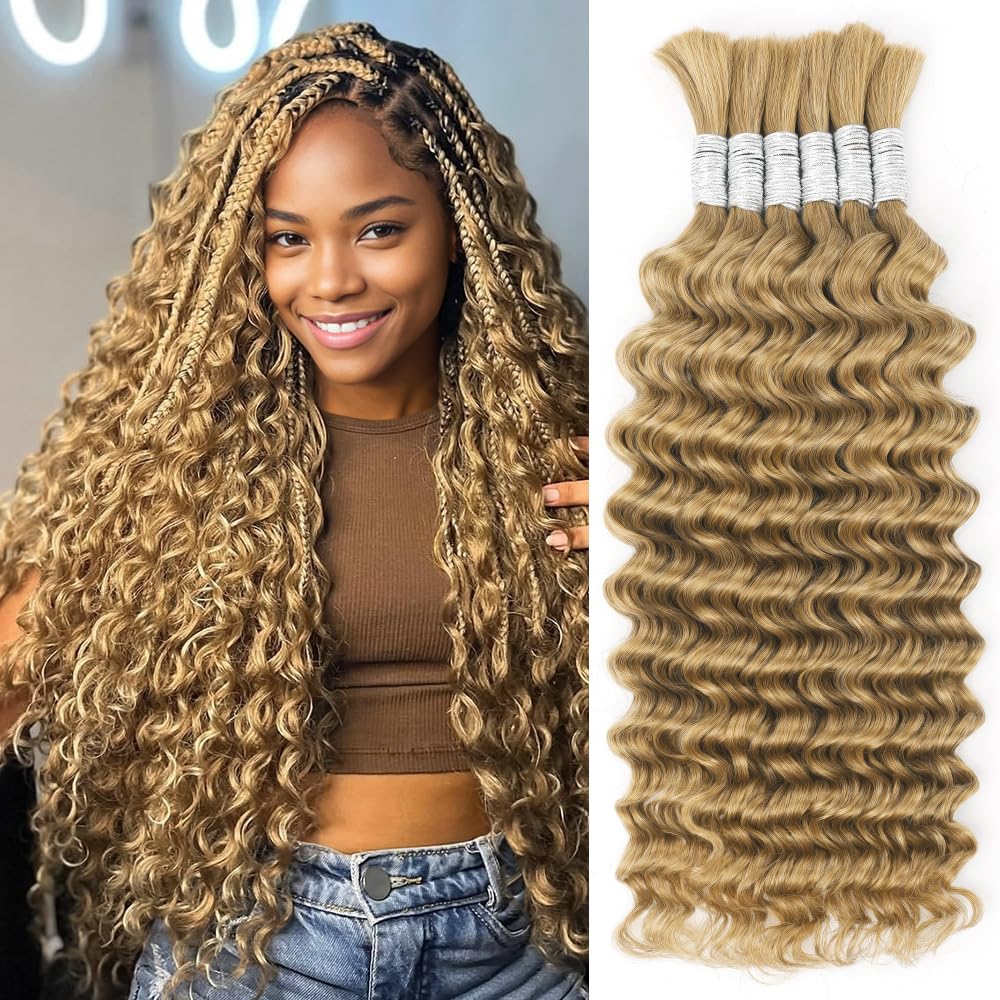 Braiding Hair for Boho Braids Deep Wave Human Hair 150g 20 Inch Curly Boho Hair for Braiding Knotless 12A Brazilian Virgin 6 Bundles/Pack Honey Blonde|Health & Beauty