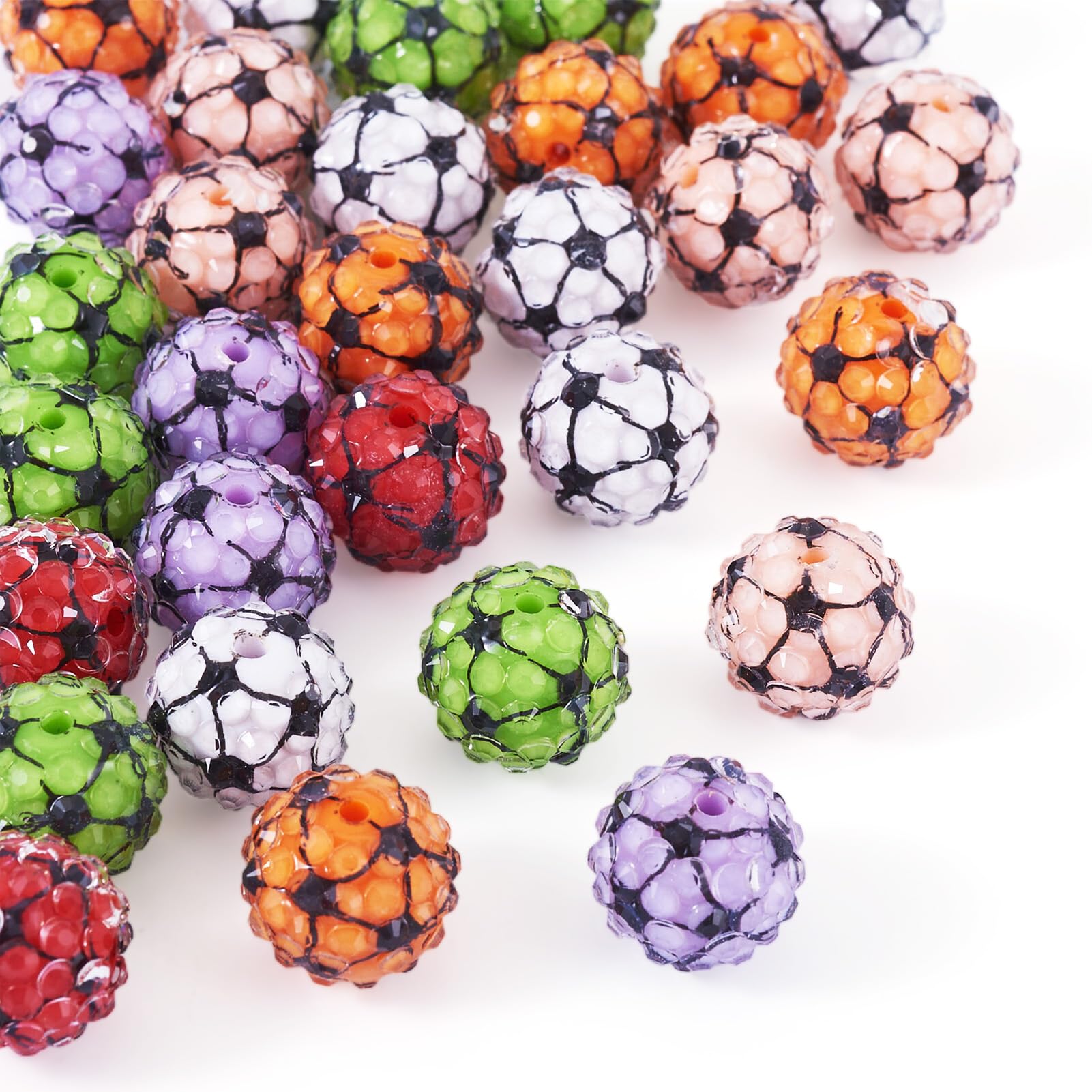 Bestewelry 30Pcs 16mm Resin Rhinestone Beads Cute Football Chunky Spacer Beads Colorful Paved Disco Ball Bead for Beaded Pens Keychain DIY Craft|Health & Beauty