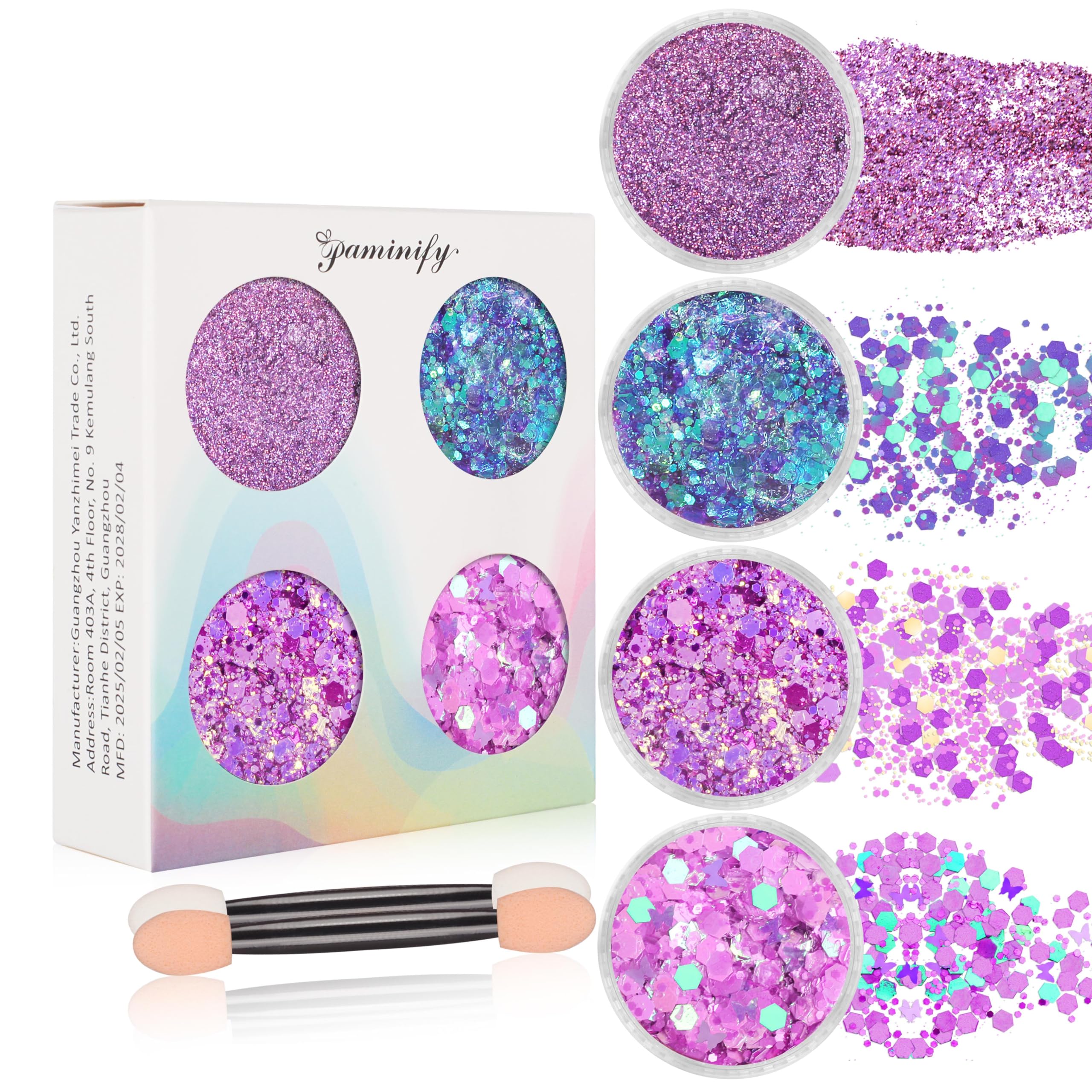 Paminify Purple Face Glitter Gel,Mardi Gras Outfit for Women,4 Styles Mardi Gras Body Glitter,Sparkling Hair Glitter Makeup,Rave Festival Accessories|Health & Beauty