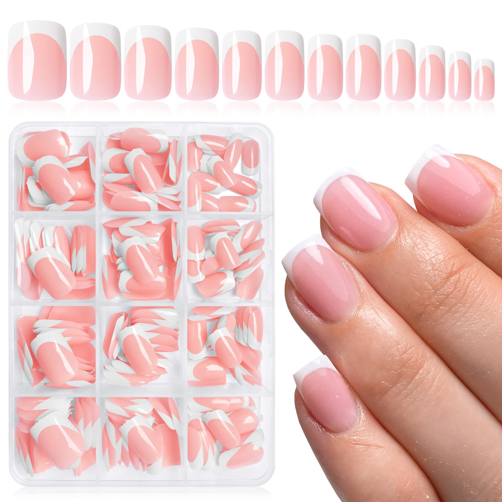 Bellelfin 240Pcs Short Press on Nails French Tip Fake Nails, Acrylic Nails Press ons White French Tip Glue on Nails Nude Stick on Nails for Women|Health & Beauty