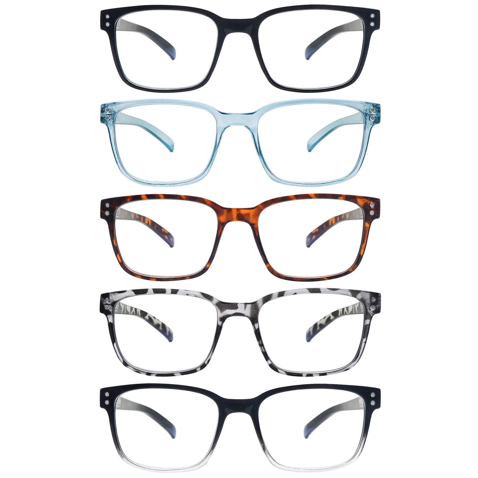 SIGVAN Blue Light Blocking Reading Glasses for Men Women Computer Spring Hinge Readers Square Frame Glasses 5 Packs (5C, 1.0)|Health & Beauty