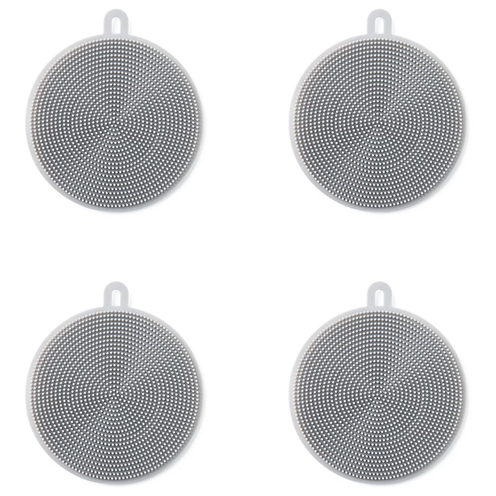 4PCS Silicone Dish Scrubber, Multipurpose Round Silicone Sponges Reusable Dish Brush Dish Brush for Kitchen Dish Dishes Fruits Vegetables(Gray)|Health & Beauty