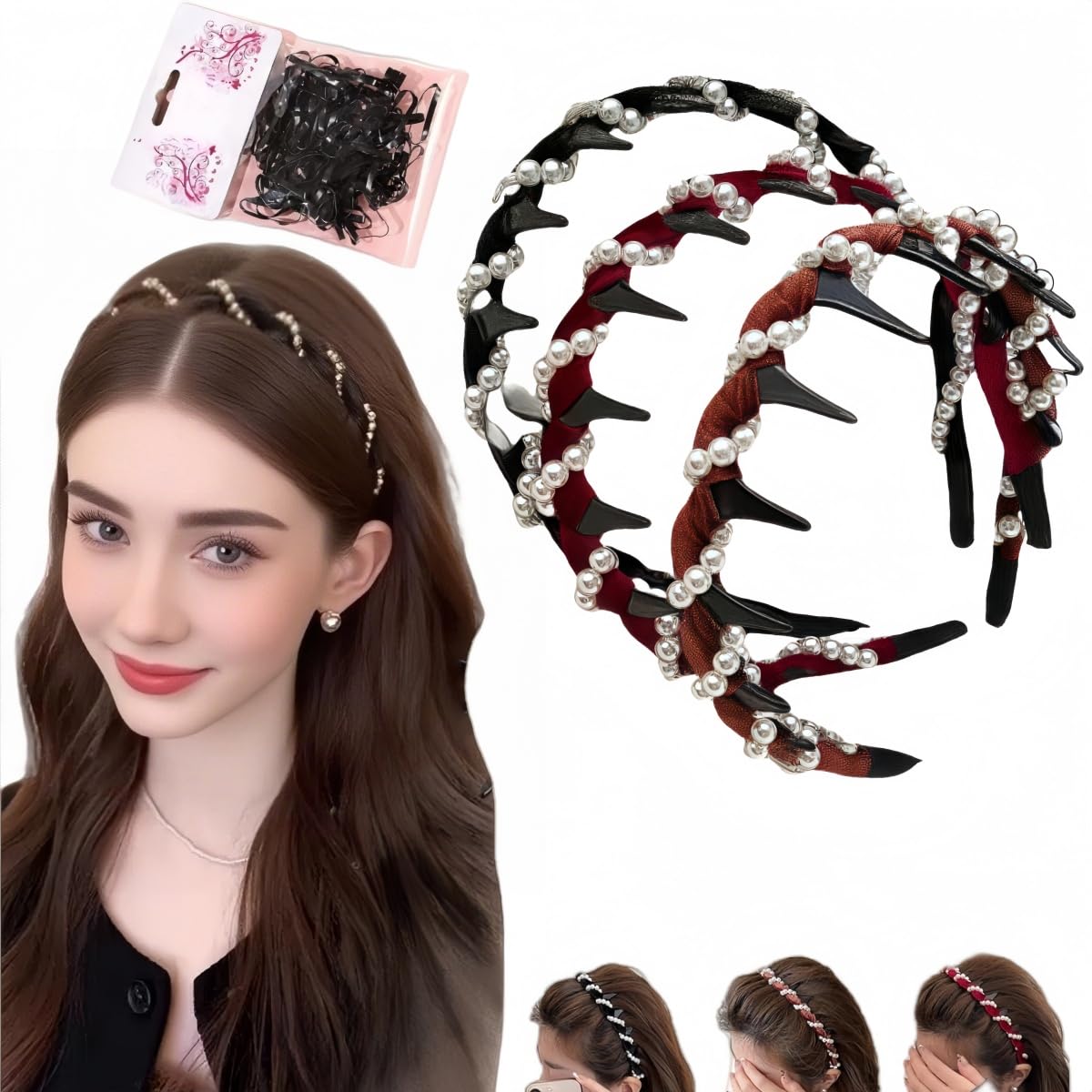 2025 New Elegant Non Slip Pearl Headbands,Vintage High-cranium Artificial Pearl Hairband,Headbands for Women with Teeth,Wide Beaded Bling Head Band|Health & Beauty