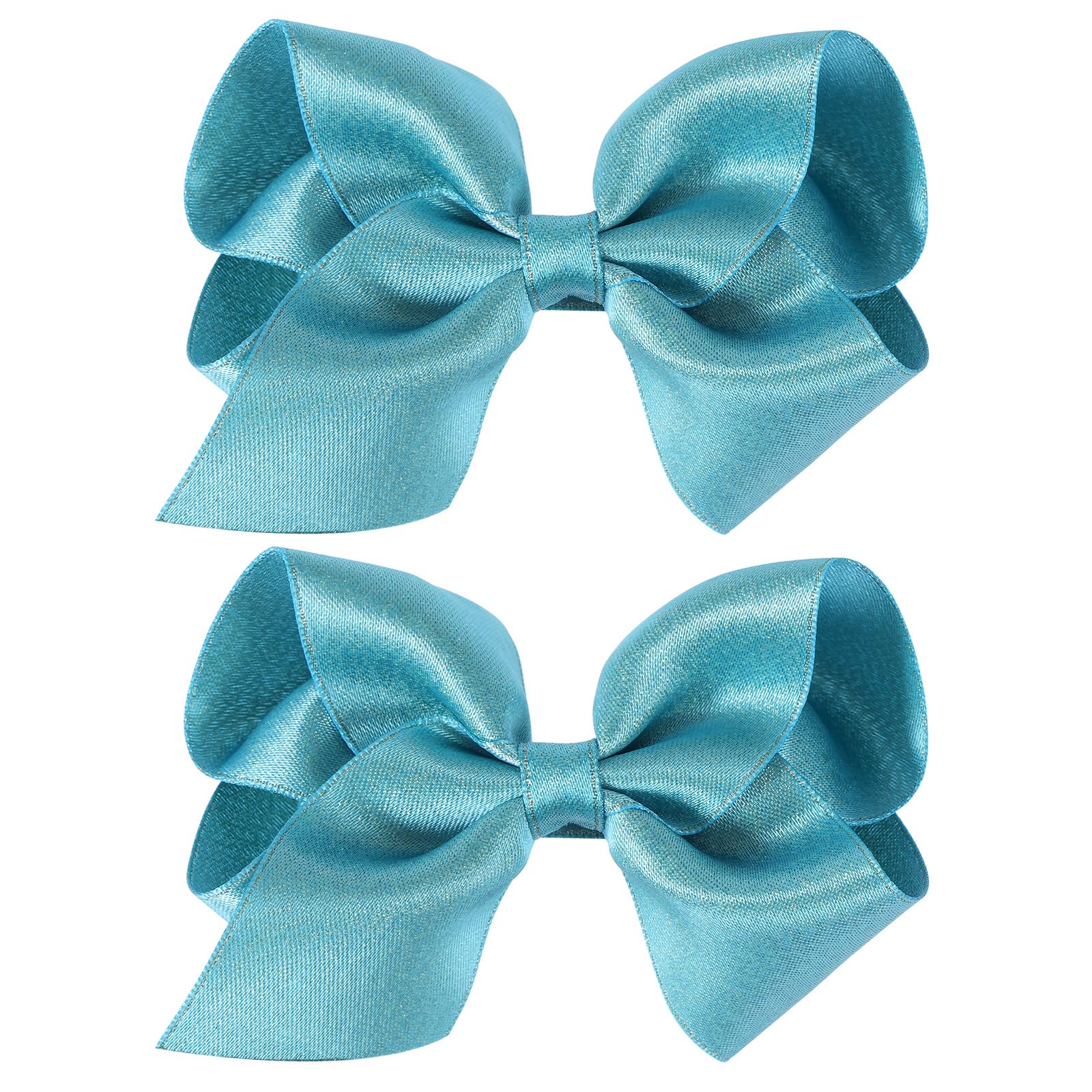 4" Big Hand-made Shiny Glitter Ribbon Hair Bows Clips, Solid Turquoise Blue Ribbon Barrettes Alligator Hairpins outfit Dress Decor Accessories for|Health & Beauty