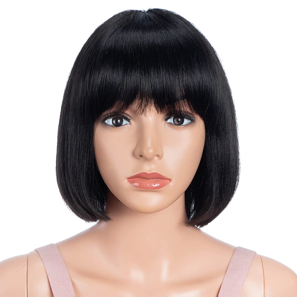 Joedir Short Bob Straight Black Bob Wig with bangs 100% Human Hair Wig for Women 8 inch Short Bob Wig Natural Looking for Daily Use(Black Color)|Health & Beauty