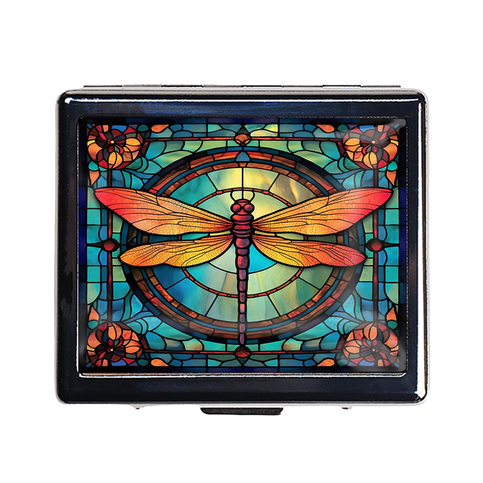HowGuu 7 Days Chromed Shiny Silver Pill Organizer with Mirror Inside Has 8 Separate Compartments Rectangle 7 Days Pill Box Pill Case (Dragonfly|Health & Beauty