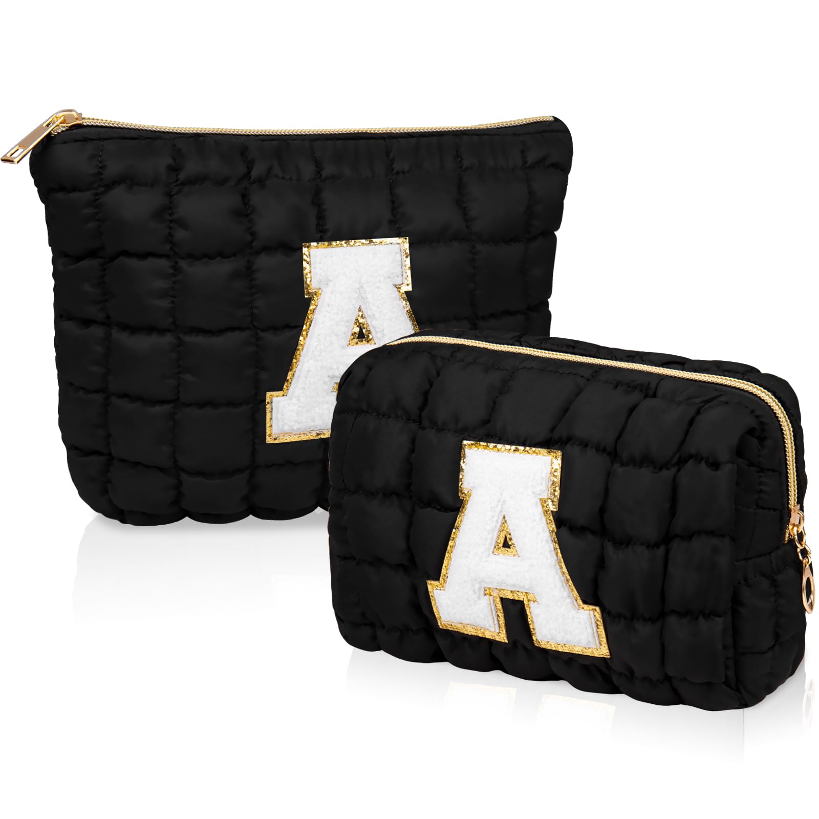 Gosect 2PCS Initial Checkered Makeup Bag, Large Quilted Cosmetic Bag, Cute Make up Pouch for Purse, Travel Toiletry Storage Bag for Women Preppy Teen|Health & Beauty