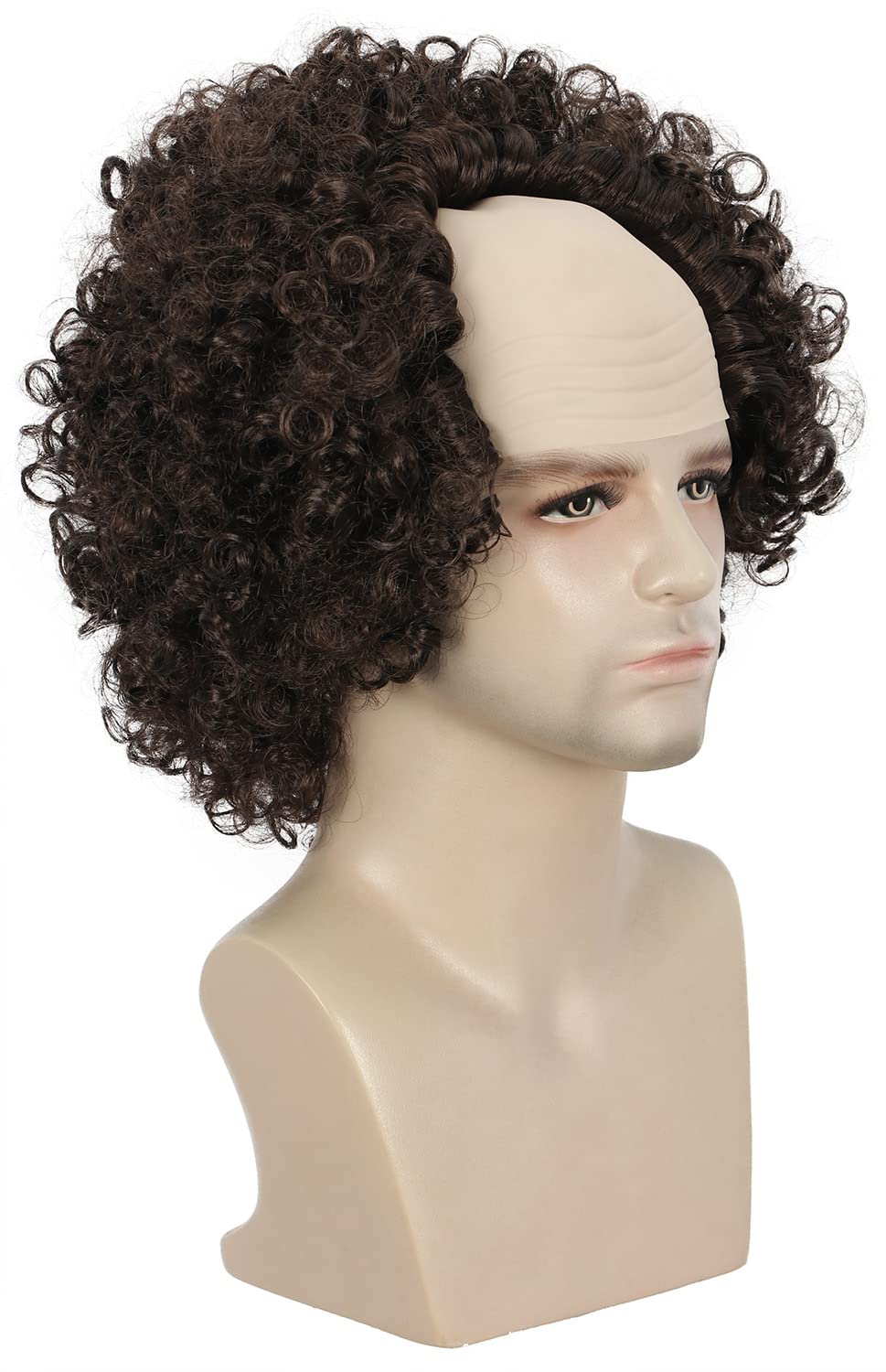 karlery Old Man Short Curly Dark Brown Bald Cap Wig Afro Wig for Halloween Cosplay Party|Health & Beauty
