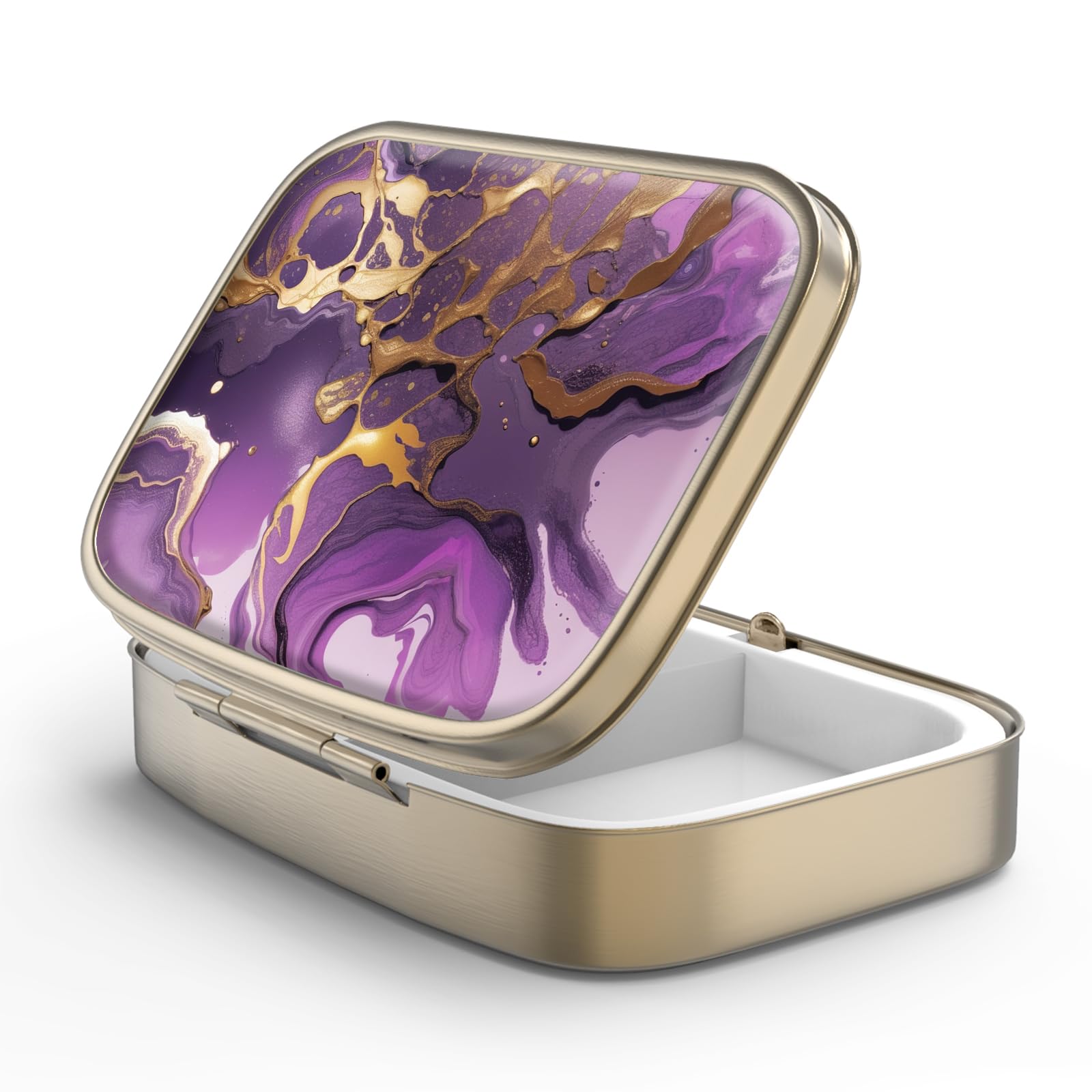 Pill Case Pill Box with Mirror Retro 2 Compartment Small Pill Case for Purse or Pocket Bronze Rectangular Pill Box or Vitamins, Fish Oil, Supplements,|Health & Beauty