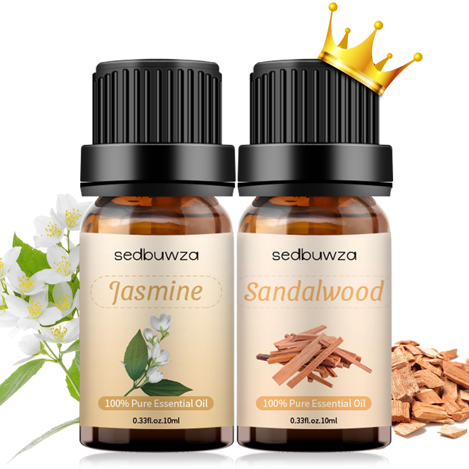 Sedbuwza Sandalwood Jasmine Essential Oil Set, Sandalwood Fragrance Oil Jasmine Scent Oil Set for Diffuser, Aromatherapy, Massage, Soap, Candle Making|Health & Beauty