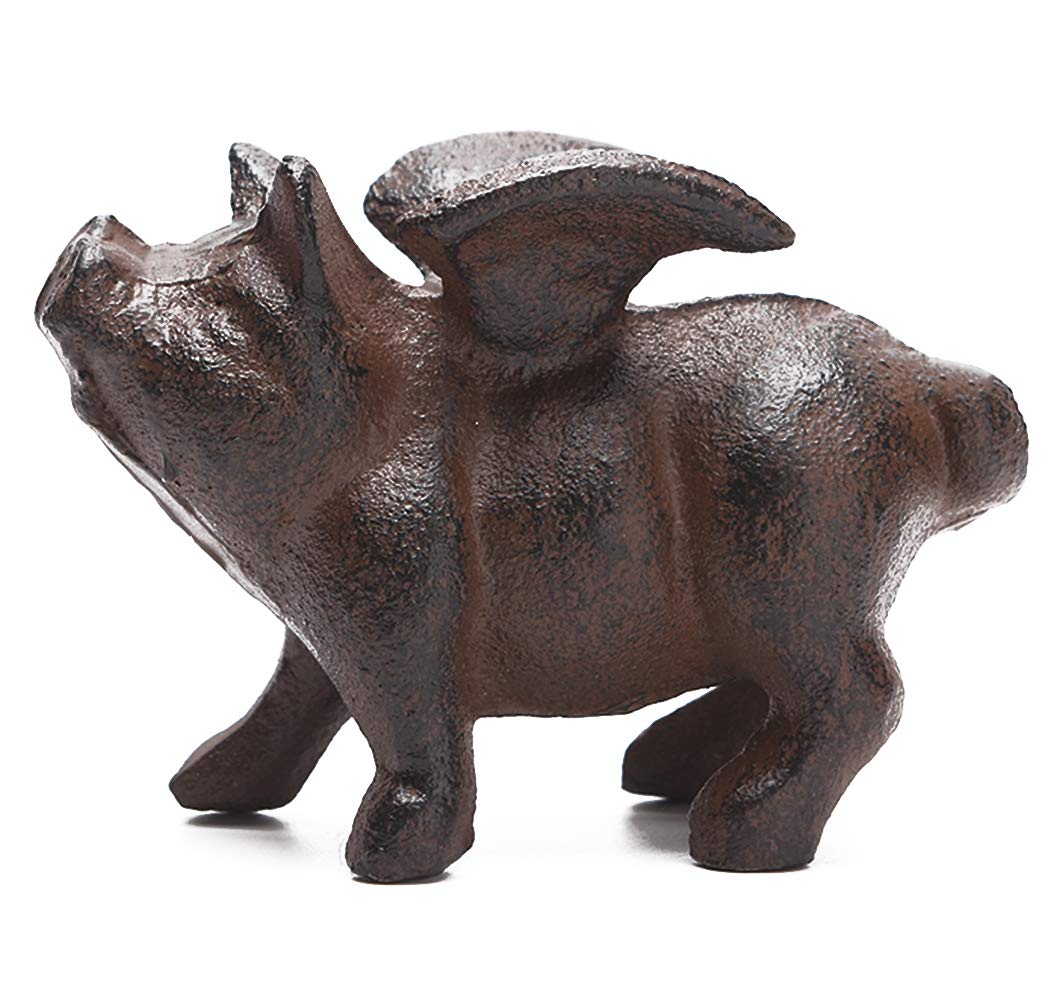 BRASSTAR Cast Iron Flying Pig Statue Paperweight Garden Home Office Desk Decor Collection Animal Figurine PTWQ008|Home & Garden