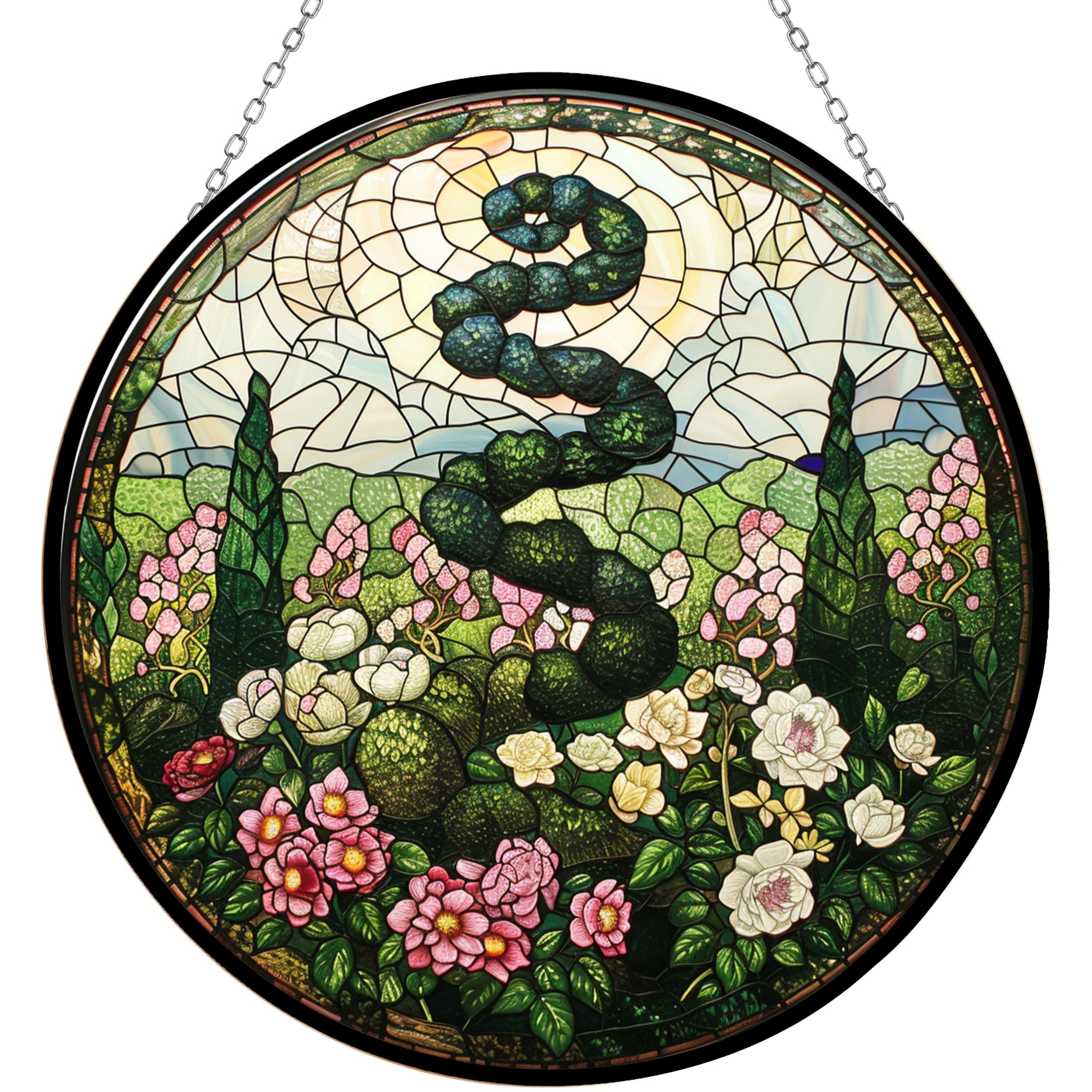 365CUSGIFTS Victorian Topiary Garden Stained Glass Sun Catcher, Wall Hanging Colored Decor Room Outdoor Window Decor, Halloween, Christmas Hanging|Home & Garden