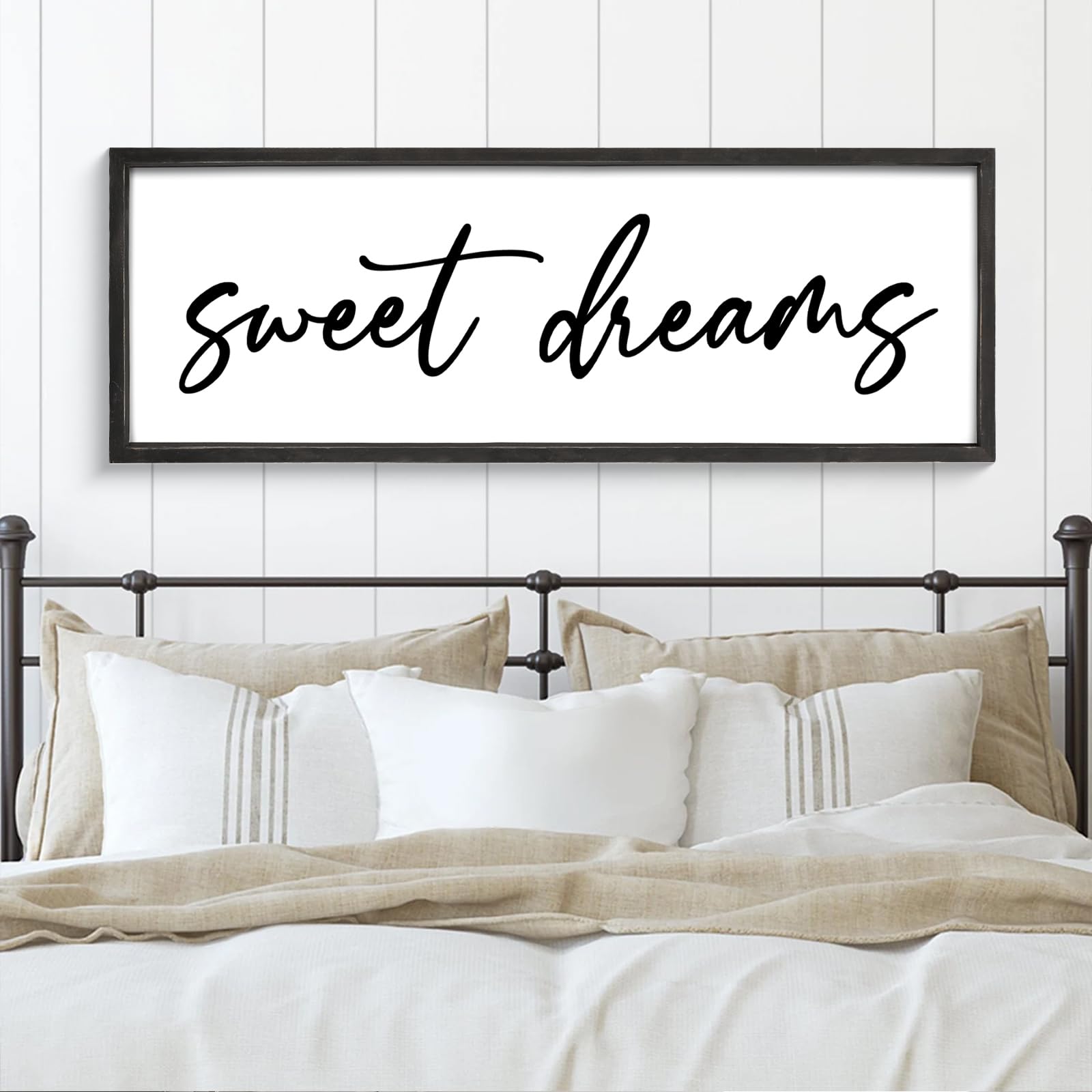 UPPER DECOR Sweet Dreams Wall Decor Above Bed 42''×15'' Large Bedroom Sign Farmhouse Bedroom Wall Sign Wood Framed Guest Room Decor Master Bedroom|Home & Garden