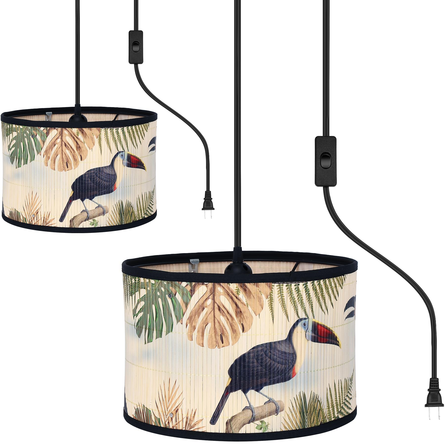 Bioaqua 2 Piece Boho Hanging Lamp,Hanging Lights with Plug in Cord (15ft),Macrame Bamboo Pendant Light with Pattern,Bohemian Hanging Lights for|Home & Garden