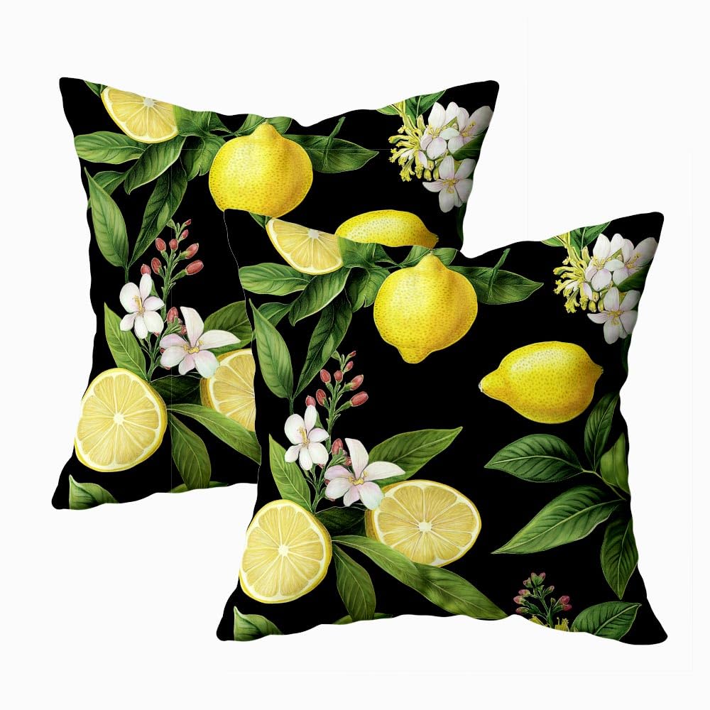 EMMTEEY Throw Pillow Cover Decorative Throw Pillow Covers Lemons on Black Pillow Covers 18X18 Set of 2 Pillowcase Covers with Zipper Farmhouse Decor|Home & Garden
