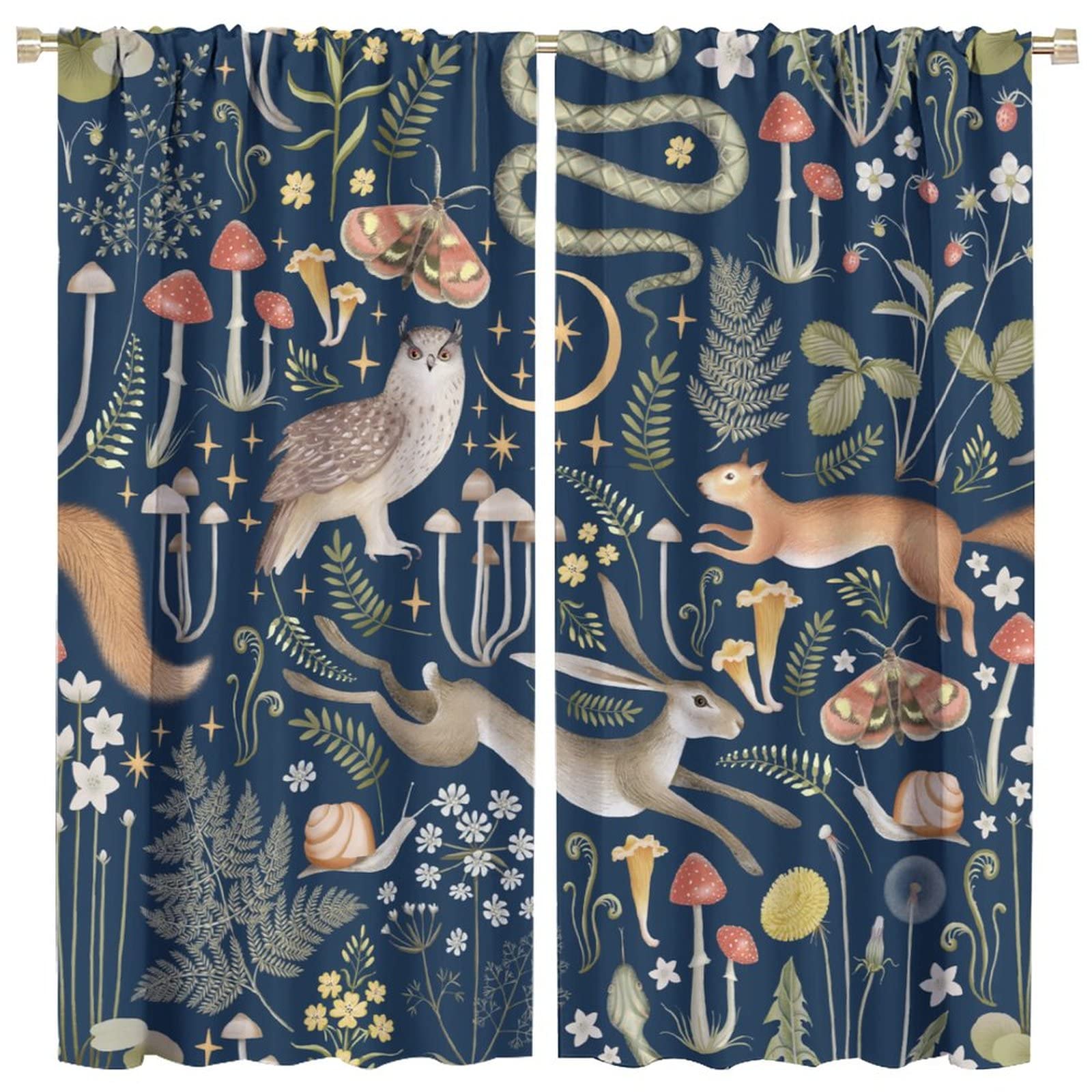 JanJCurt Fairy Forest Curtains, Retro Woodland Wildlife Owl Squirrel Print Blackout Window Drapes, Rustic Flowers Mushrooms Pattern Window Treatments|Home & Garden