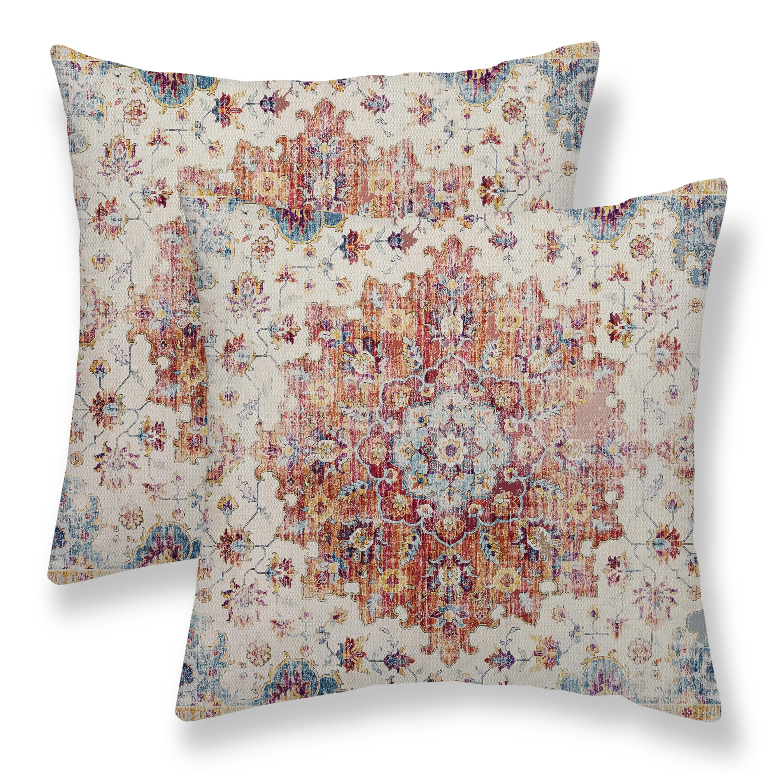 Sunshineyan Boho Pillow Covers 16x16 Set of 2, Blue Orange Bohemian Carpet Pattern Outdoor Decorative Throw Pillows Linen Ethnic Design Vintage|Home & Garden
