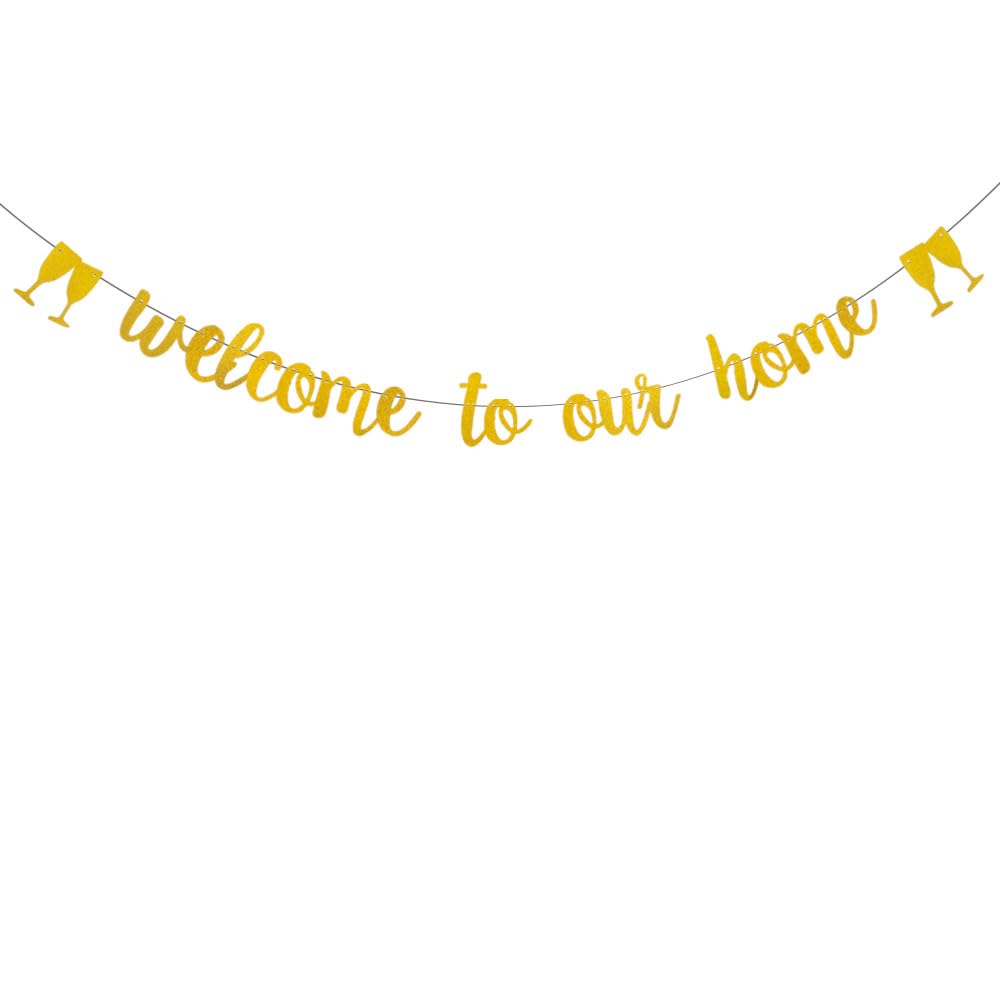 WEIANDBO Welcome to Our Home Gold Glitter Paper Banner,Pre-Strung,Suitable for Housewarming/Patriotic Military Decoration Family Party Supplies|Home & Garden