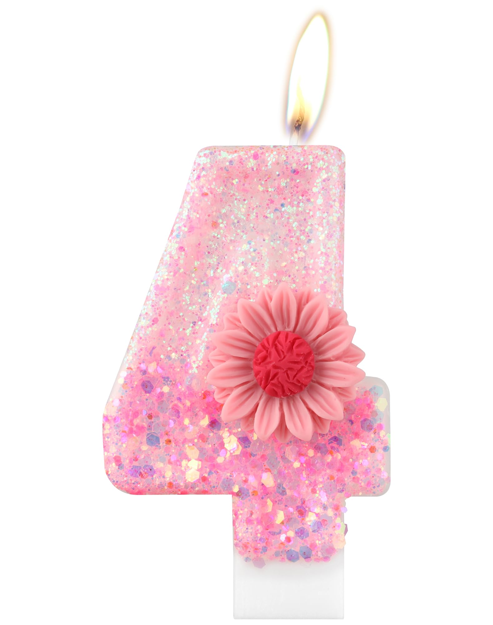 iNINGER Pink Number Birthday Candles, Daisy Birthday Candle, Glitter Candles for Girls 4th Birthday Parties|Home & Garden