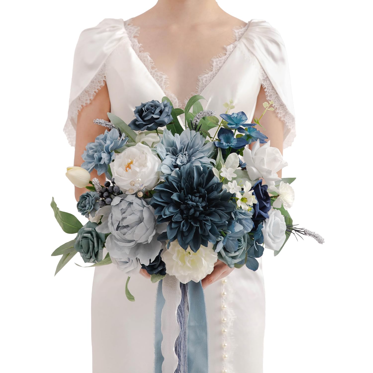 TINGE TIME 11 Inch Wedding Bouquets for Bride, Dustyblue Artificial Flowers Bouquet, Brides & Bridesmaids Bouquet for Wedding Anniversary Ceremony|Home & Garden