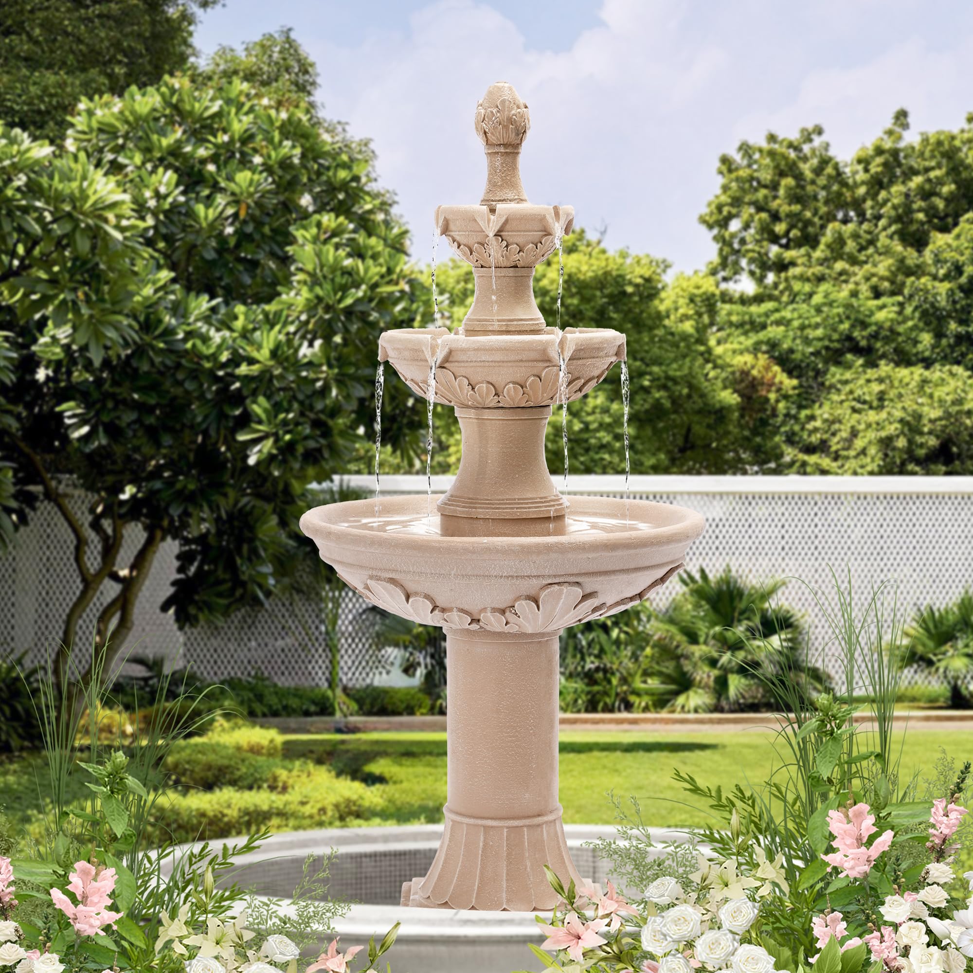 MAIBH Pineapple Top Italian Water Fountain 48.4" H, 3-Tier Outdoor Floor Bubbler Lawn Waterfall Fountains with Roman Pillar, Freestanding Bowls|Home & Garden